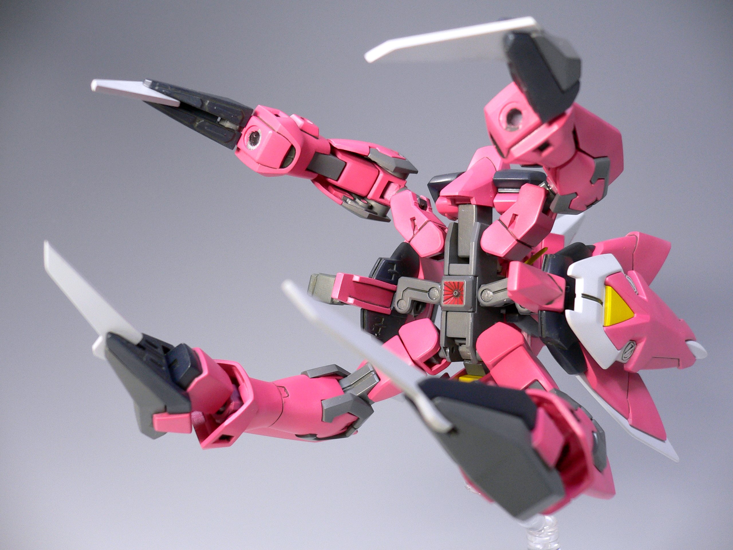 HG4作目。可動部分が多い関係で、ポリキャップがむき出しになっている箇所が多く、マスキングして塗装しようか、塗装した後から塗り直そうか迷いました。多分もっと上級者は、ポリキャップ隠し用のパーツを作ったりするんでしょうね。自分は面倒くさがりなので、全部塗り直しです。ジンに続いて、塗装にはイージスガンダム用ガンダムカラーセットを使用しました。