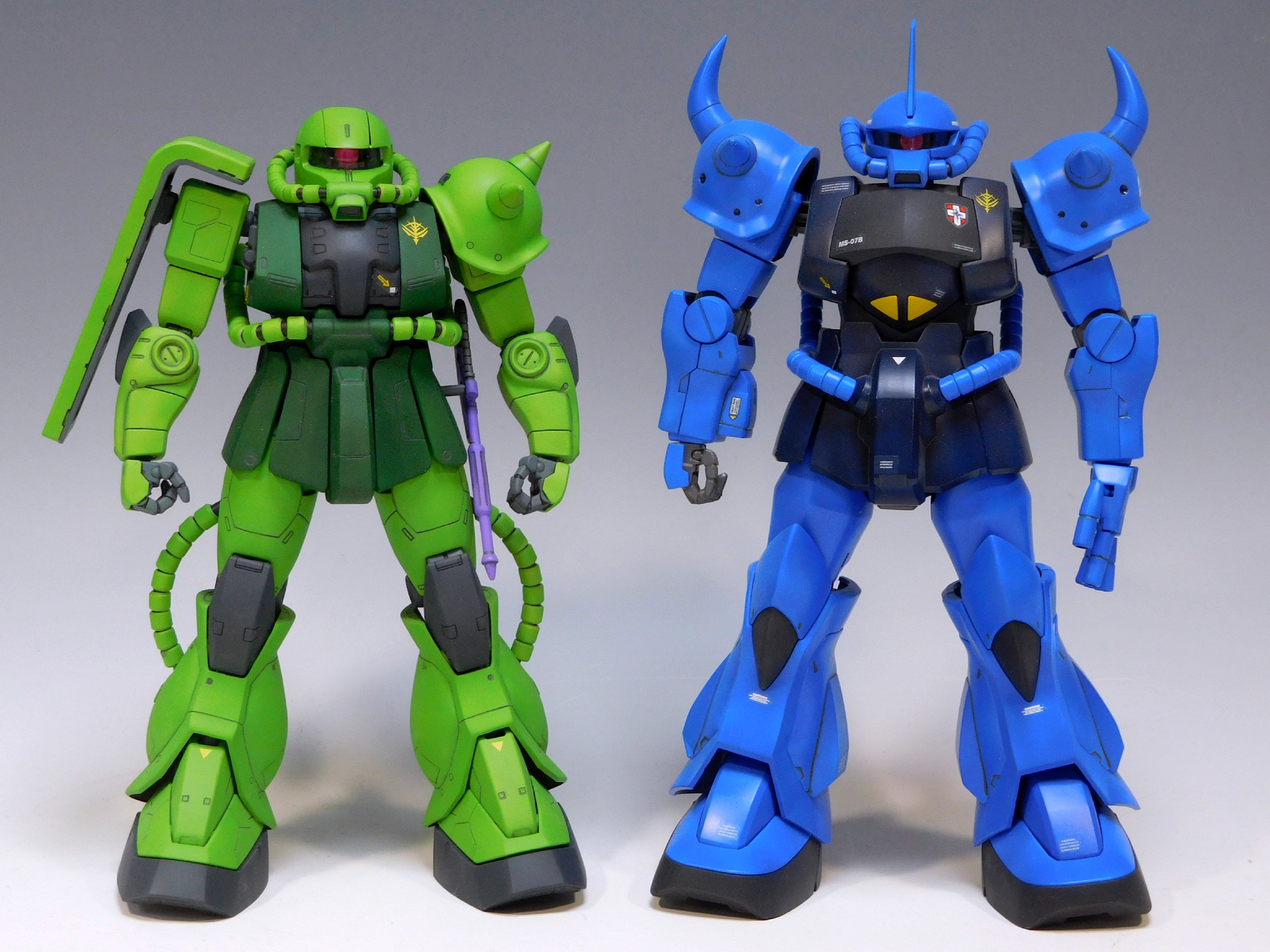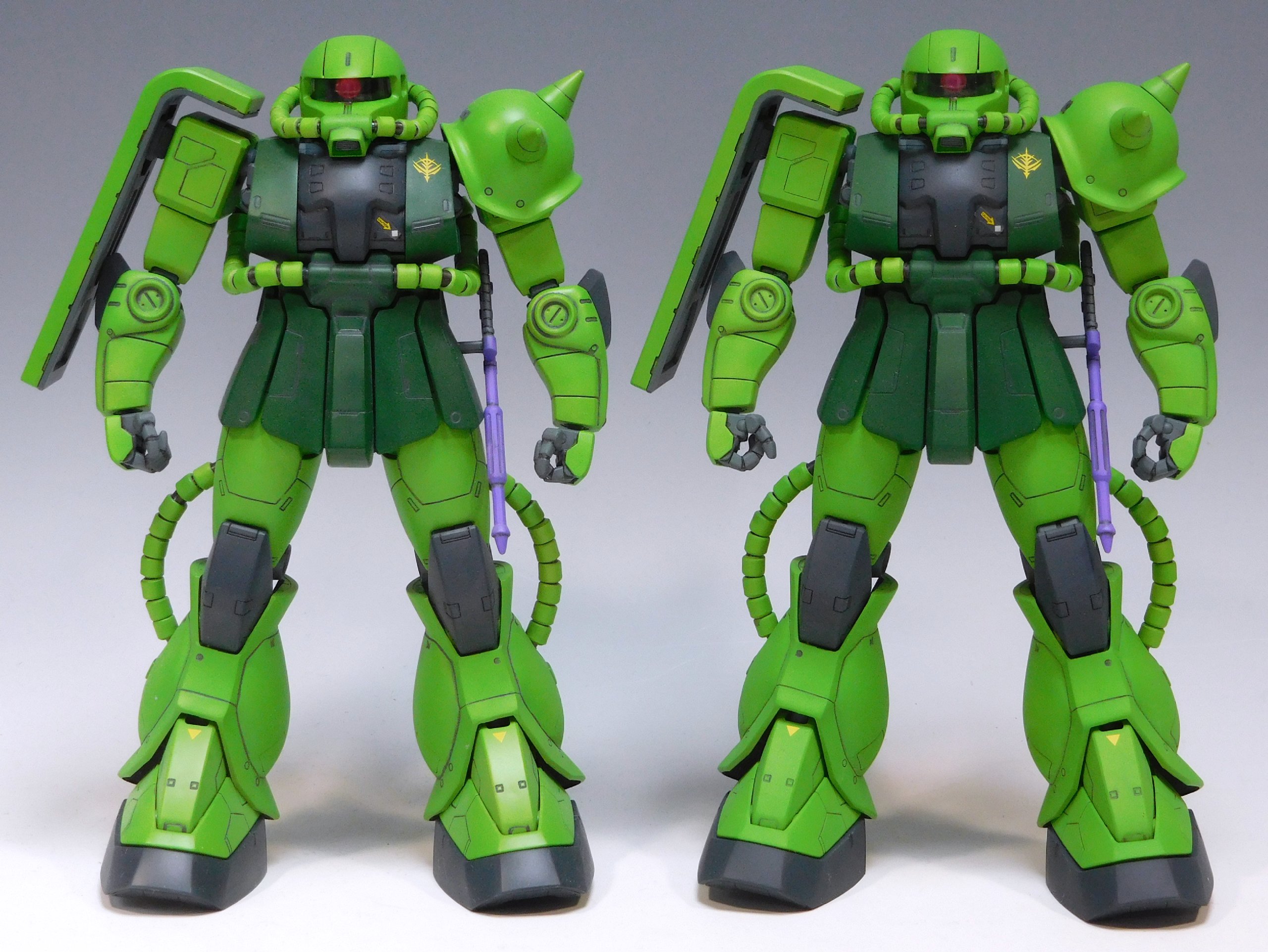 両機共に昔から『量産型ザク』と呼ばれる機体で、前から見ると全く同じ(笑)。