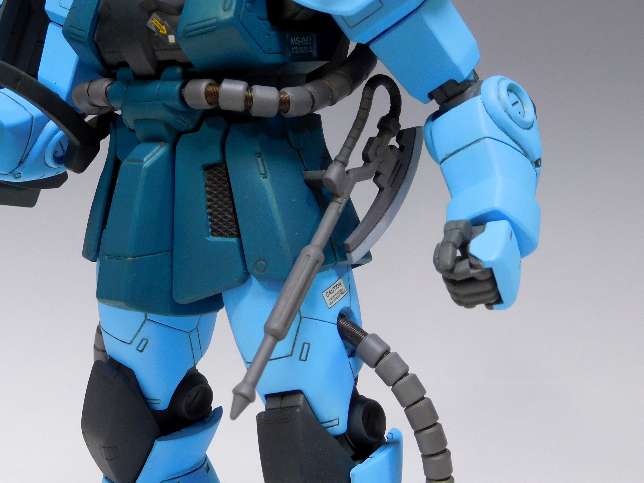 もちろん自分も好きなため、1つの折衷案として?そちらの旧ザクで使用していた防盾付きマシンガンを、こっちに乗り換えても使用していた、みたいに考えて武器は【MSV-R】を参考に改造を加えました。