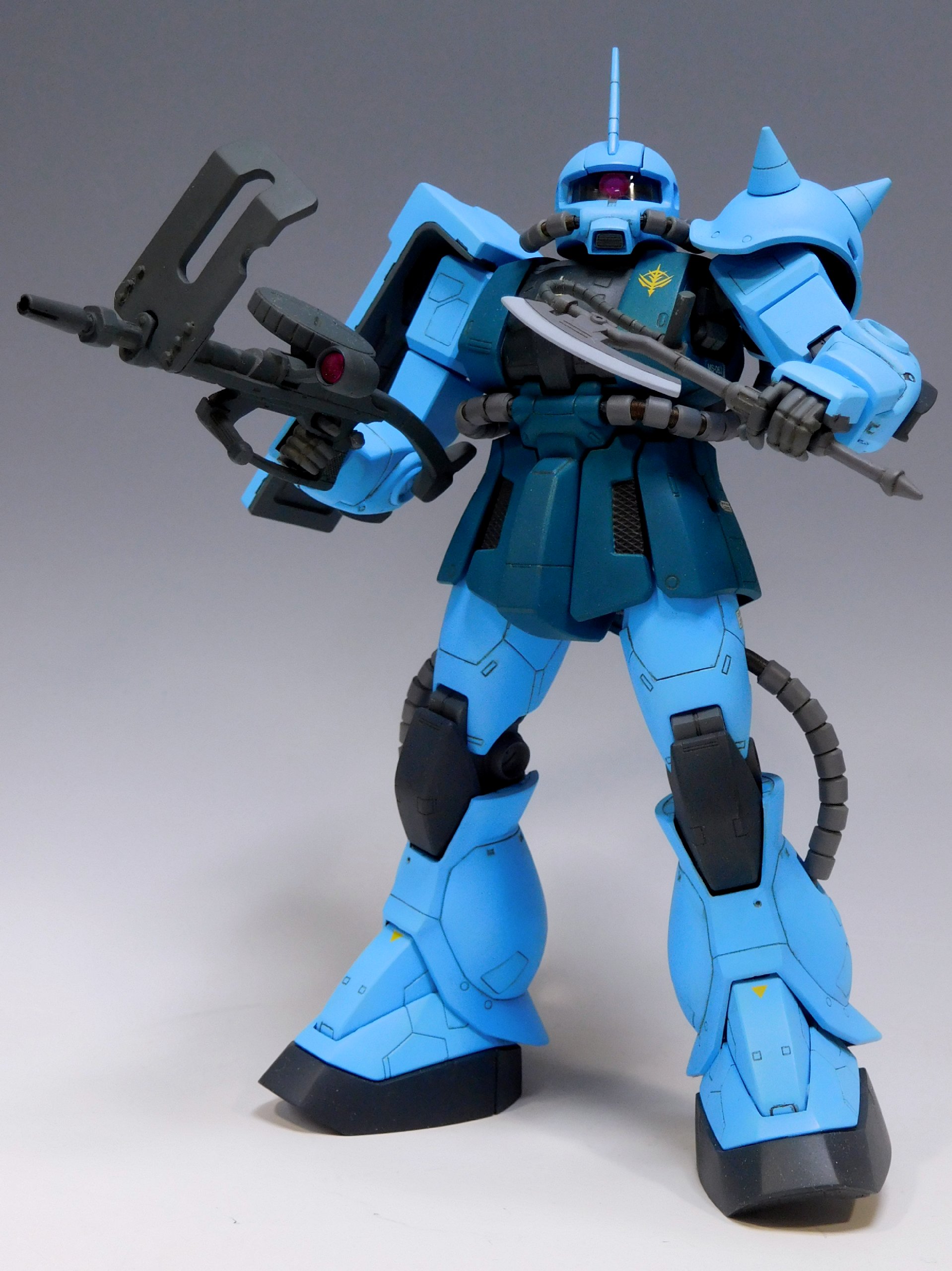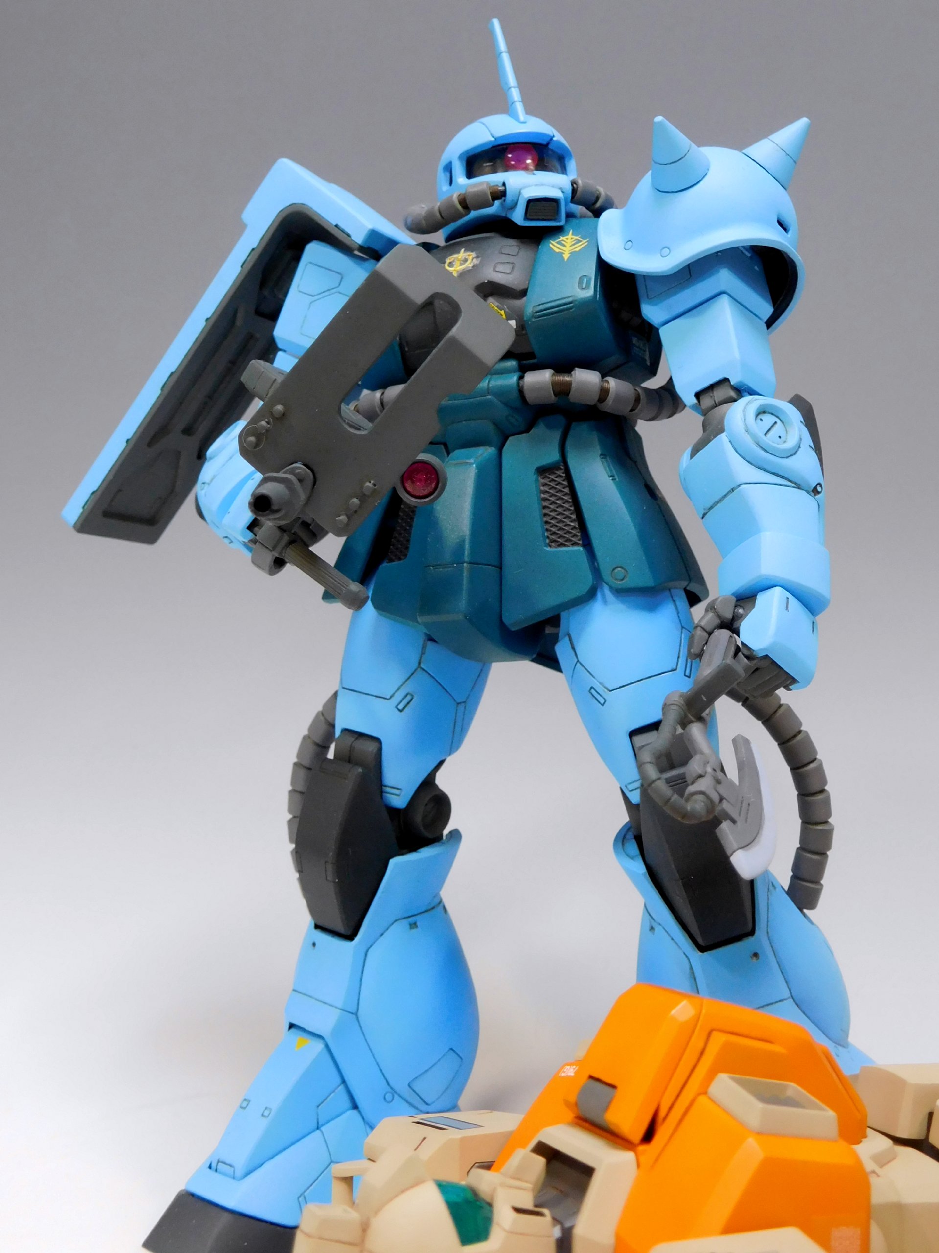 詳しくは製作記の方で書いてますが、グフ・カスタムのスカイブルーは、彼のパーソナルカラーだったというコミックス版(↓頁の下の方参照)オリジナル設定。