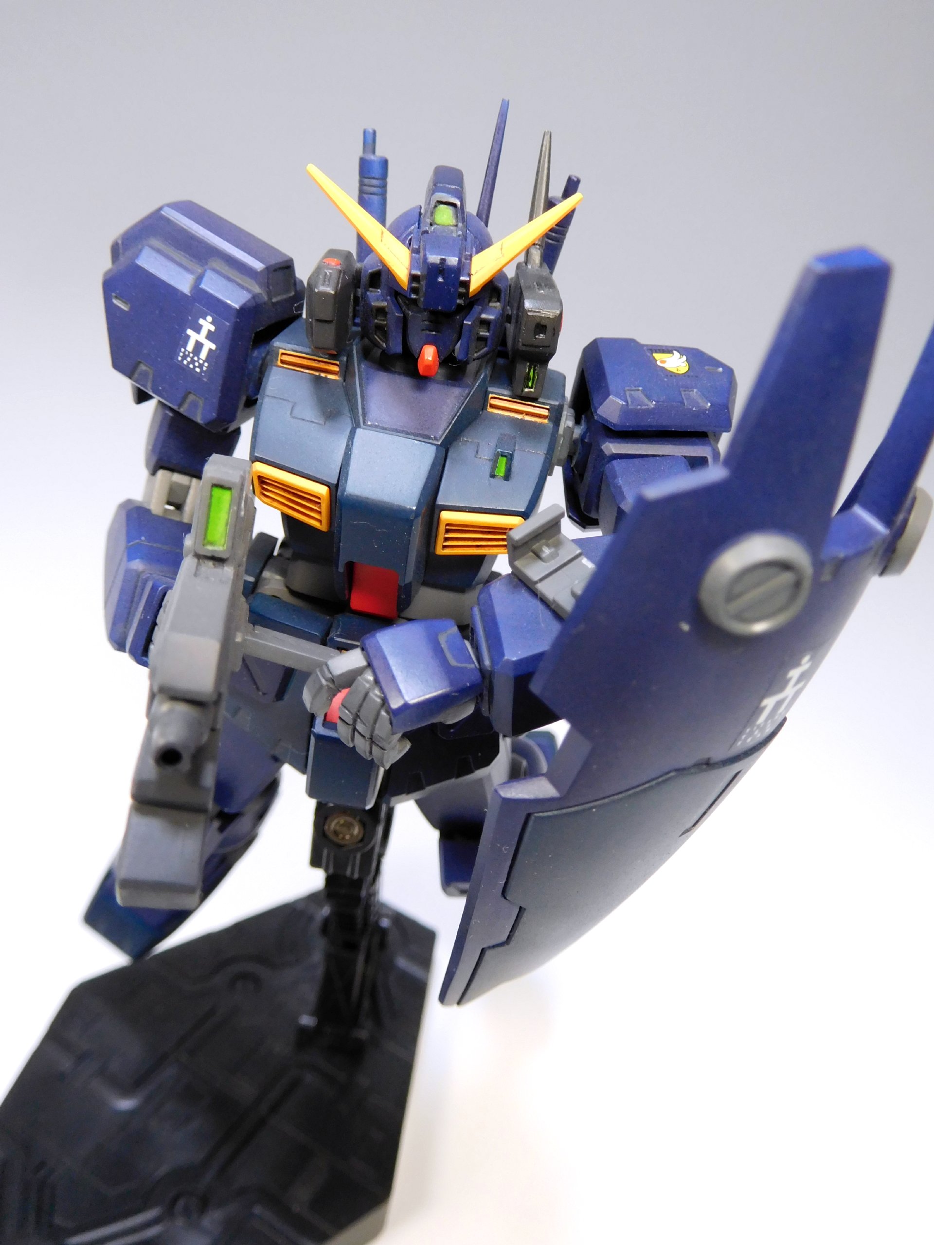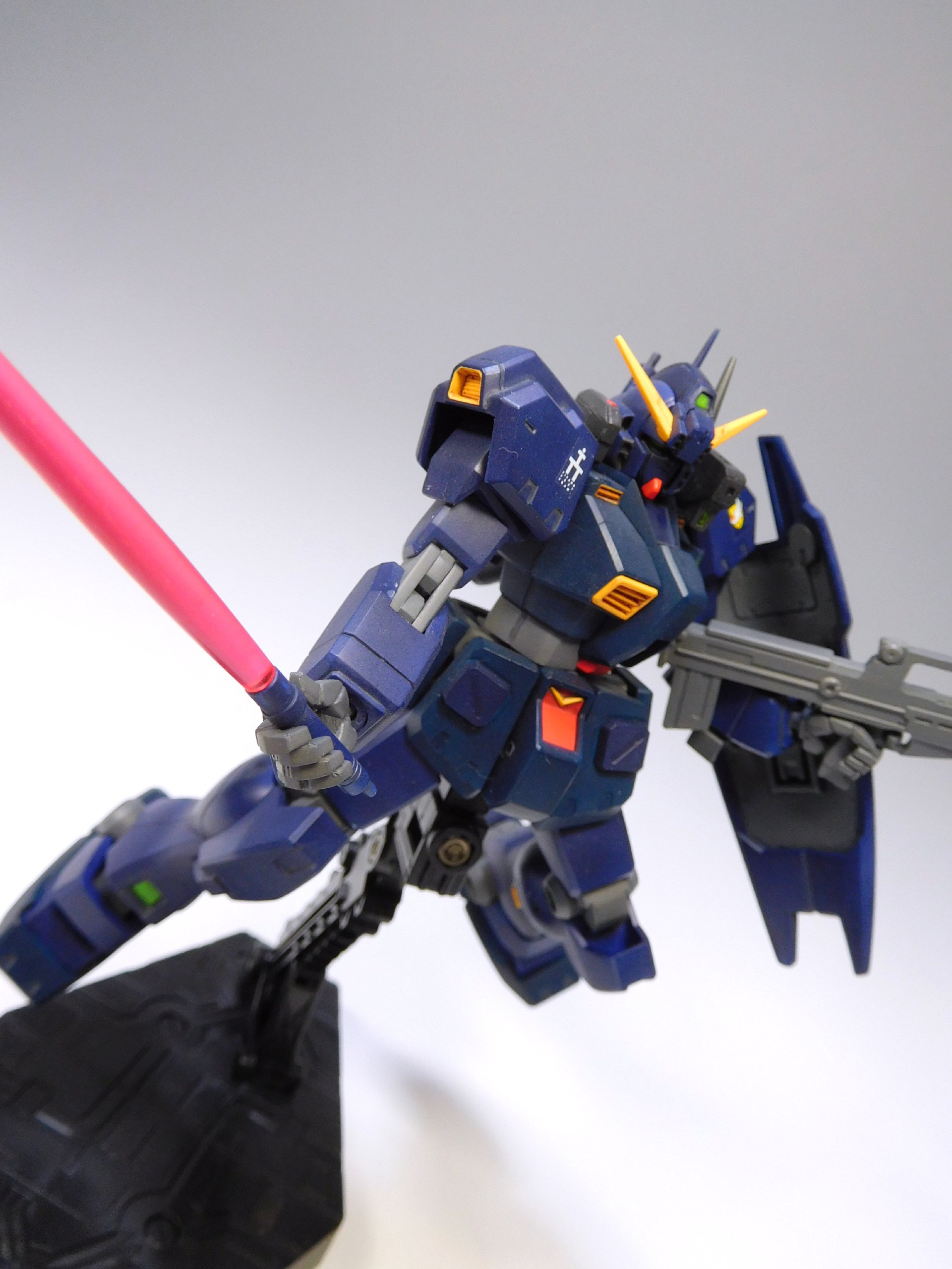本来であれば"なんちゃって″ジム・クゥエル(マーキングと塗装が微妙に違ってるので)としてもディスプレイできるように作っていたものの、長期に渡る製作の末に最終段階になって失敗、結局ジムとしての写真は撮れなくなるという、痛恨のミスに泣いた作品でもあります……(涙)。