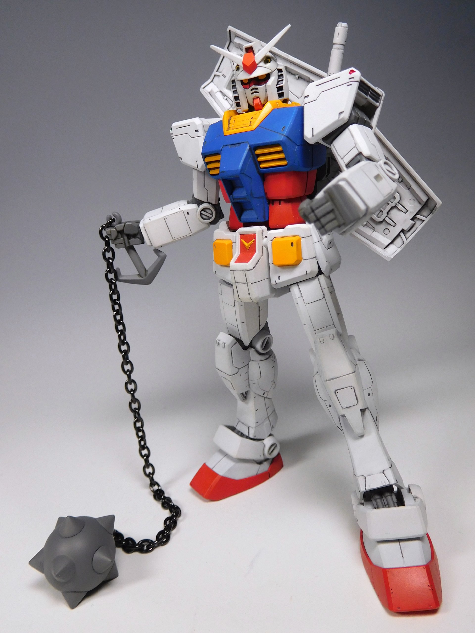 キットの売り?でもある1/144サイズでは珍しい凝った形のガンダムハンマー。お気に入りです(笑)。