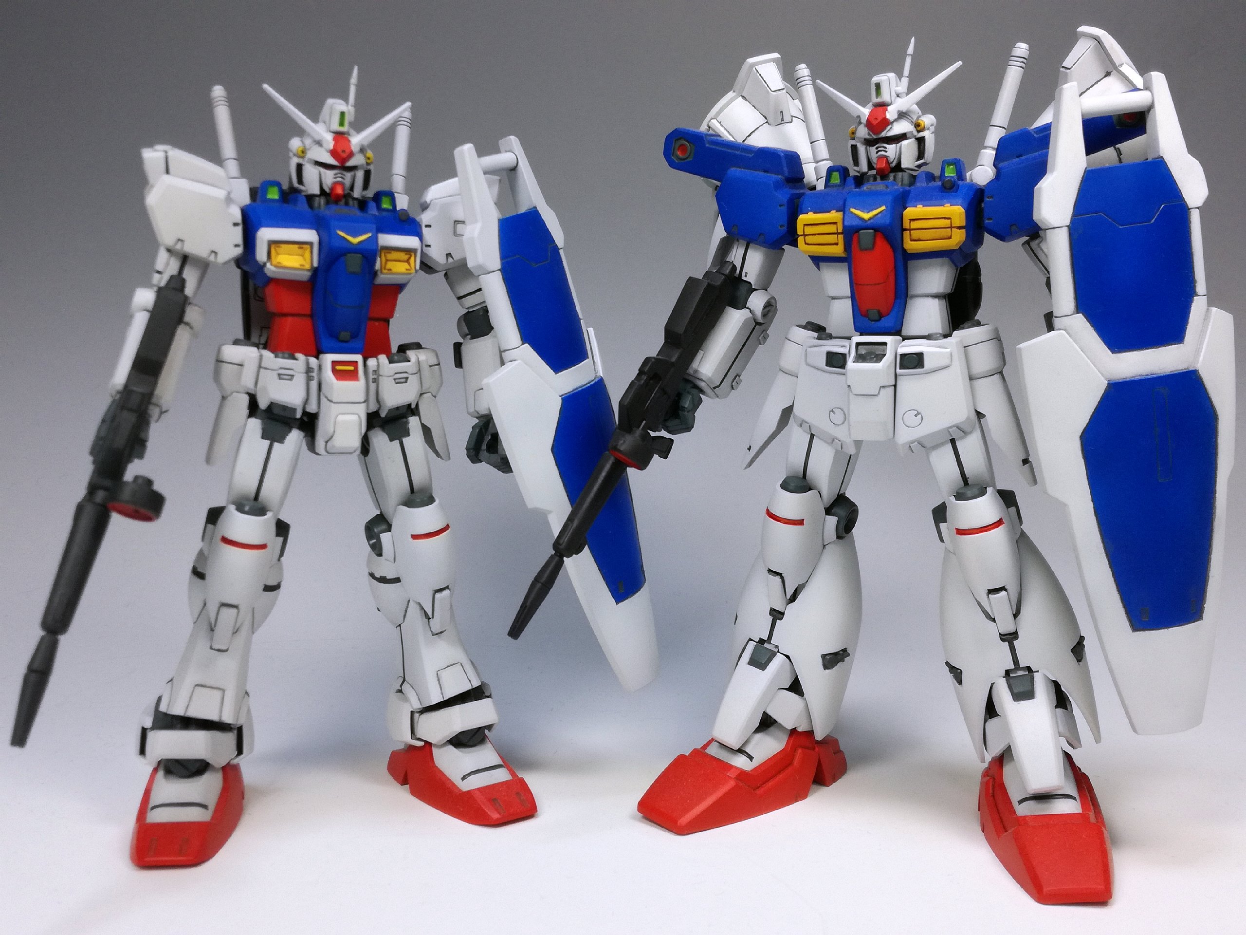 お約束。並べてみて気付きましたが、今回はスミ入れをガンダムマーカーonlyに頼ったためか(?)仕上げが荒い気がする(線が太い)……。やはり面倒でも、エナメルで行う方が綺麗に仕上がってるなぁ。教訓。