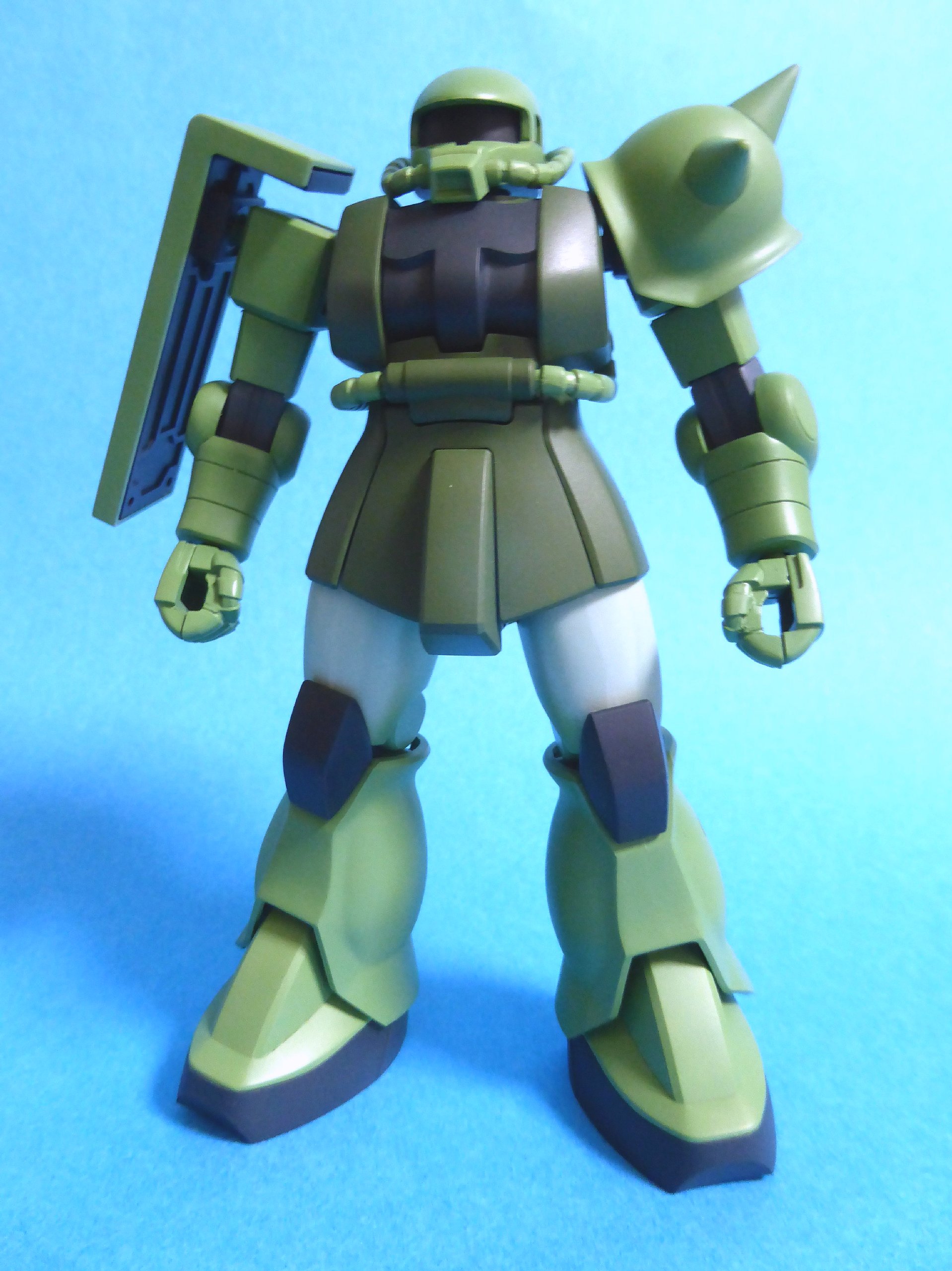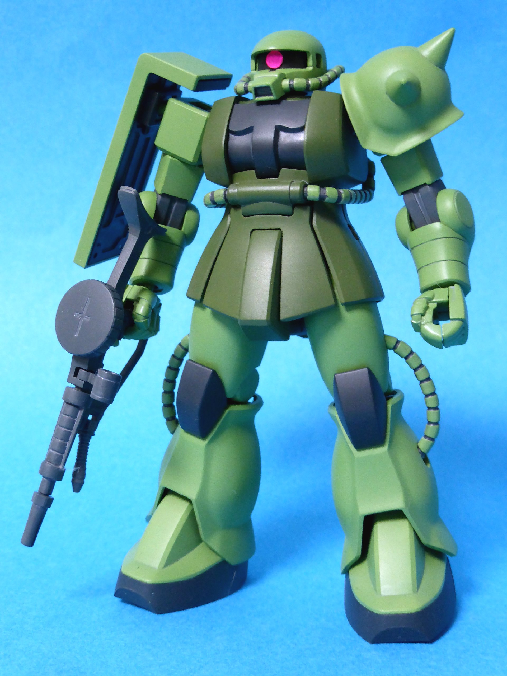 HGUCザクは初めて手にする物でしたが、関節部分がとても工夫されていて、可動範囲が広い(特に足首!)のにビックリしました。ただモノアイだけはシールなので作り変えようと思います。