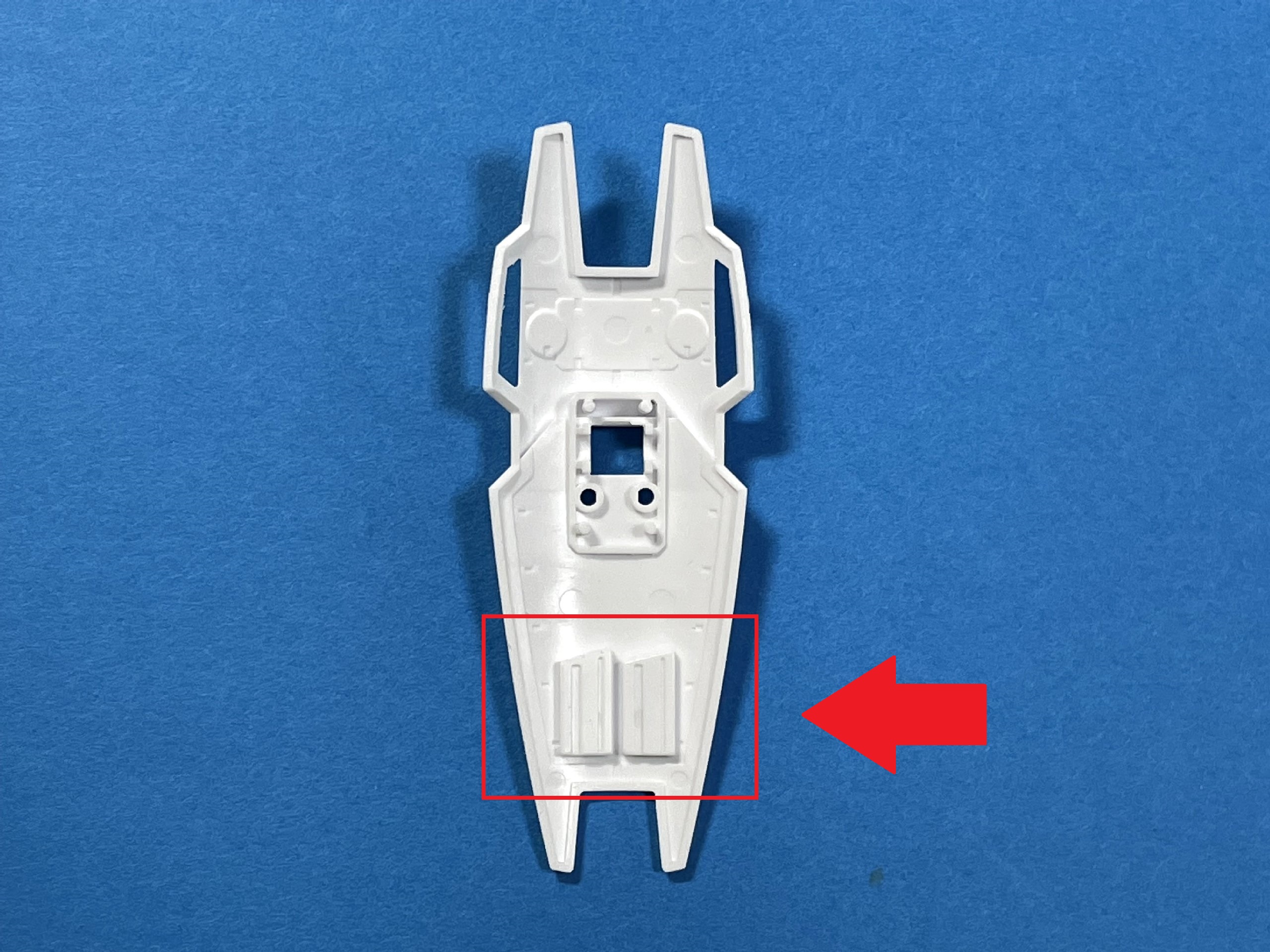 予めシールド裏に彫り込んでくれているマシンガン用のマガジン部分。シールド裏に予備のマシンガンでも取り付けられるようにしたら、マガジンもそのままでいいかとも思ったけれど、サイズ的にそのスペースがとれないという……。