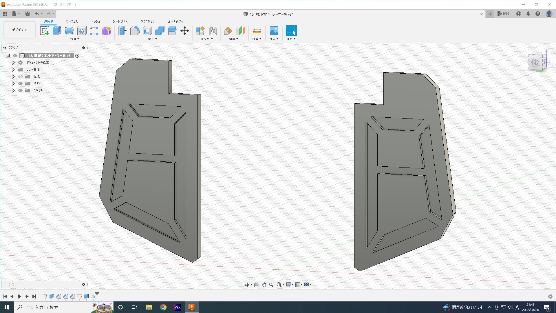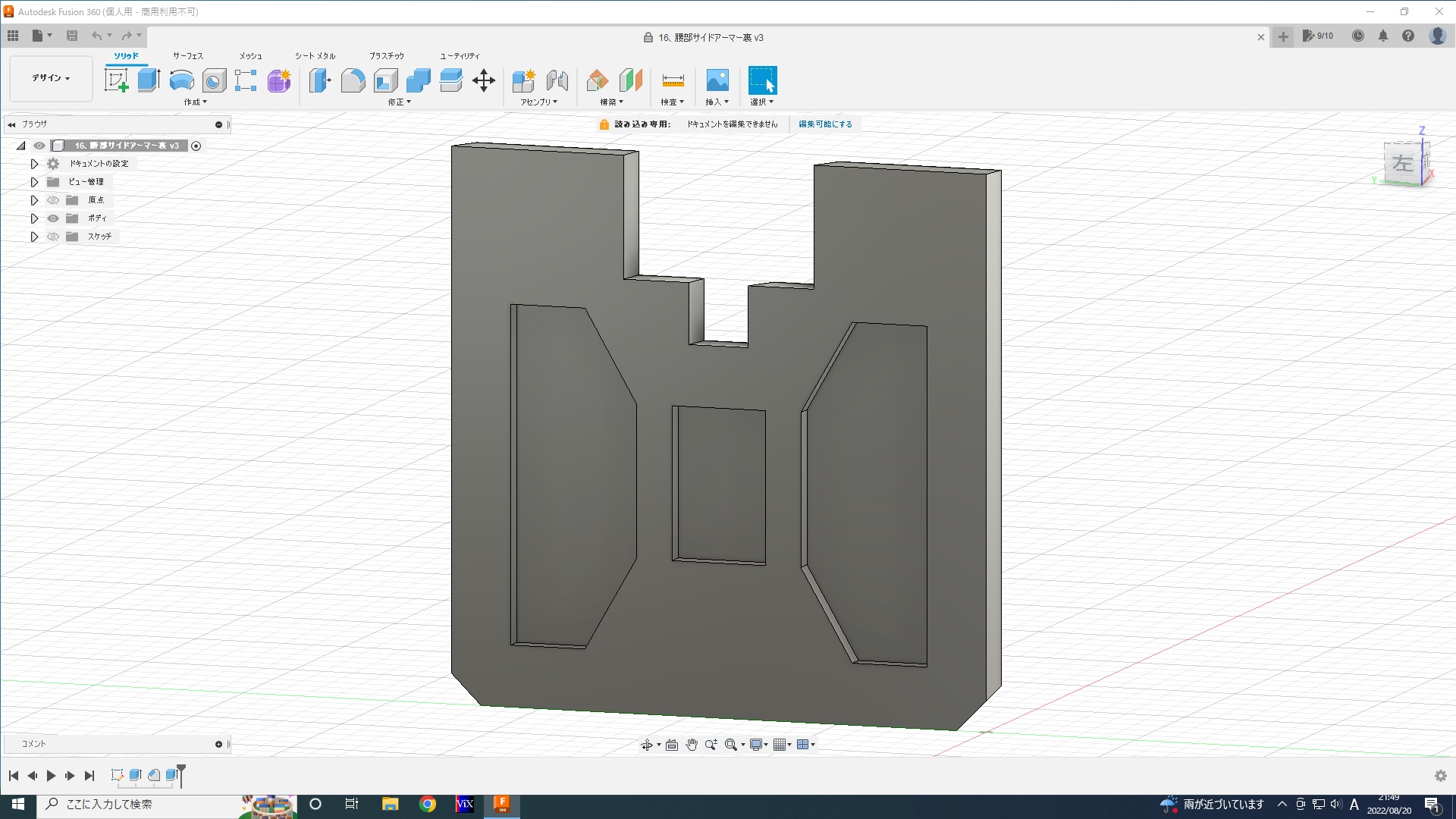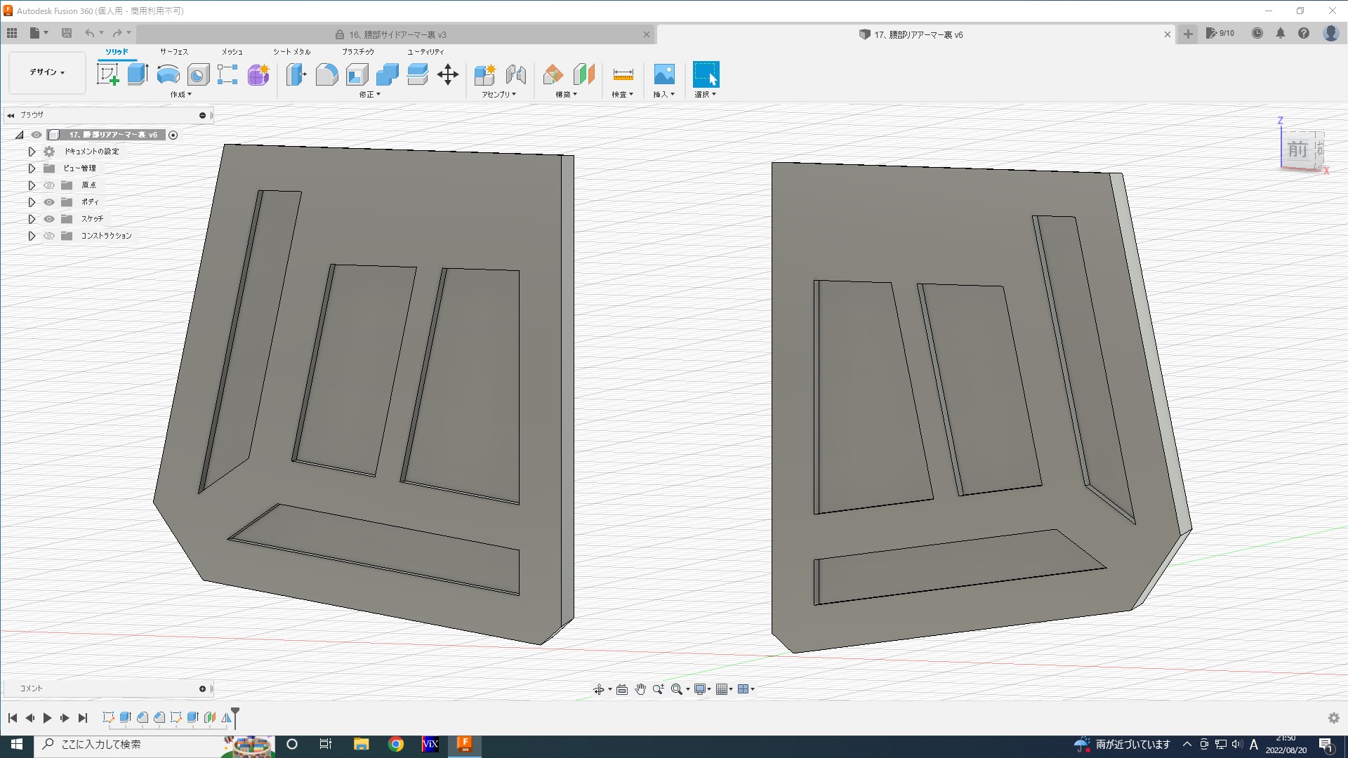 - 腰アーマー裏の設計開始。大まかに作ってみる。