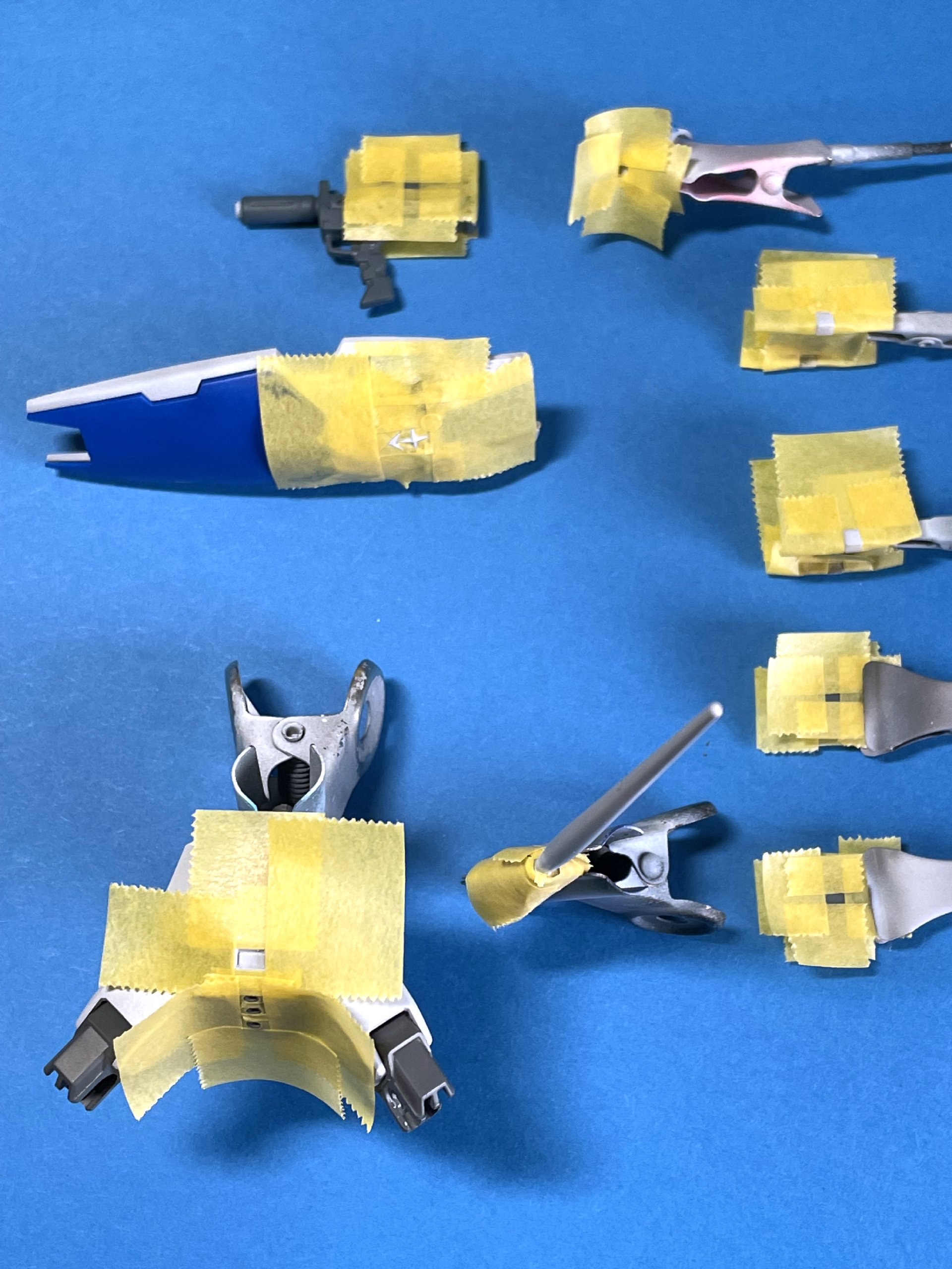 脚に至ってはほぼ完成間近、面倒なマスキング処理で既に塗り分けまで行っている箇所だけに、ここから切った貼ったで修正するのは正直キツイ……(泣)。
