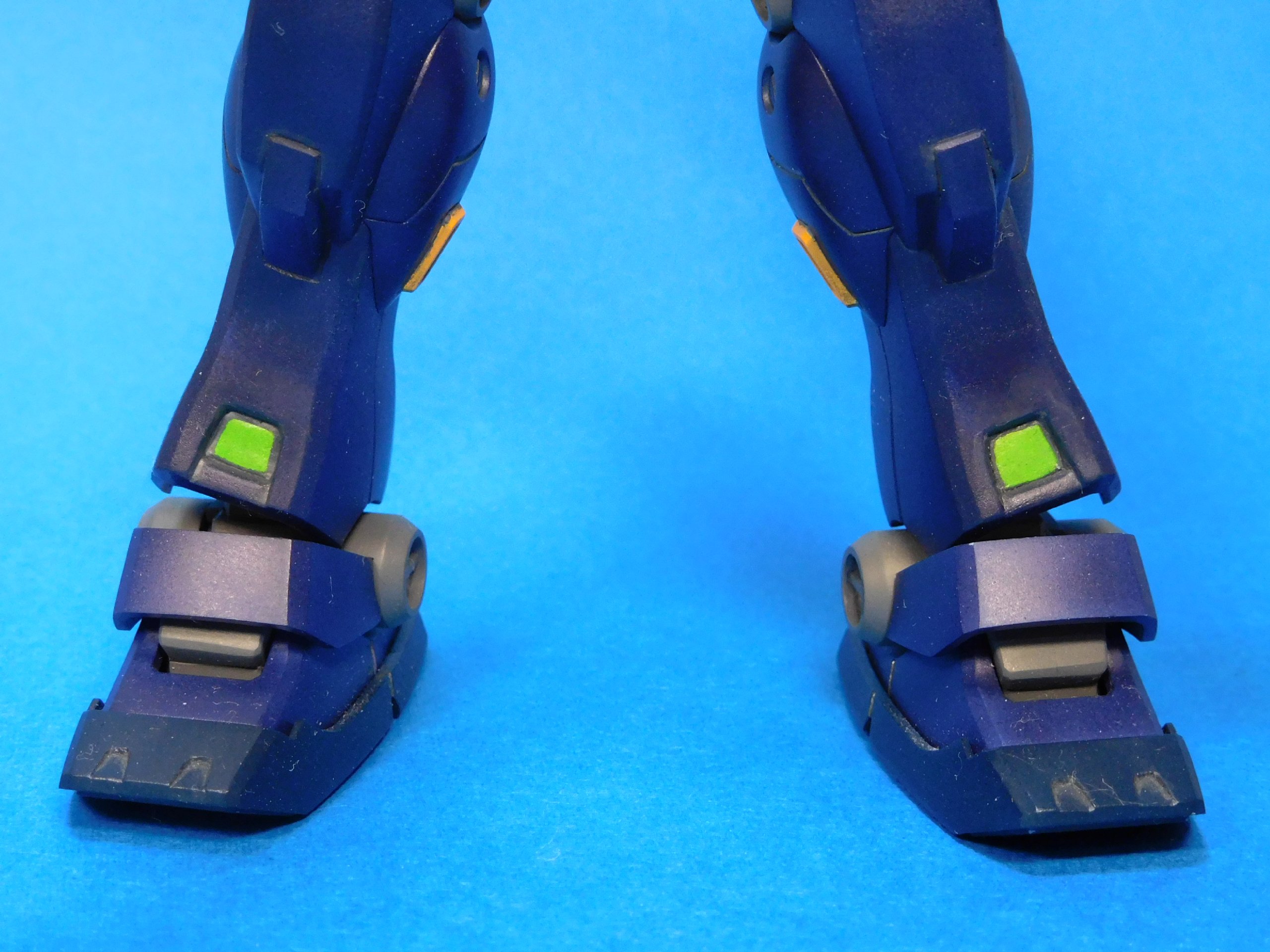 - これまでちびちびと形を整えた後、足首センサー部を塗装。一部スミ入れを残すのみとなり、これにて予備機製作の第一段階は本当に終了。