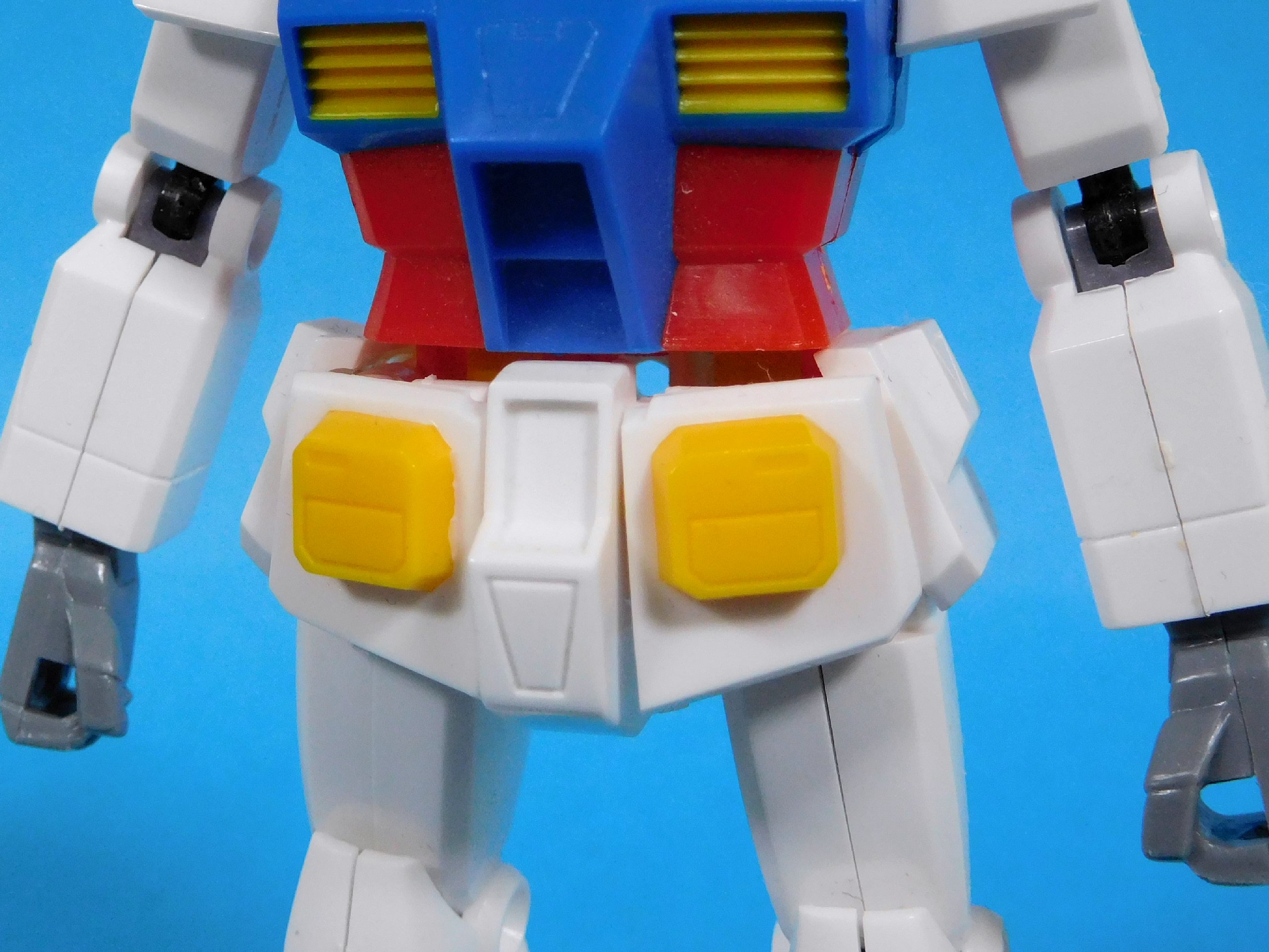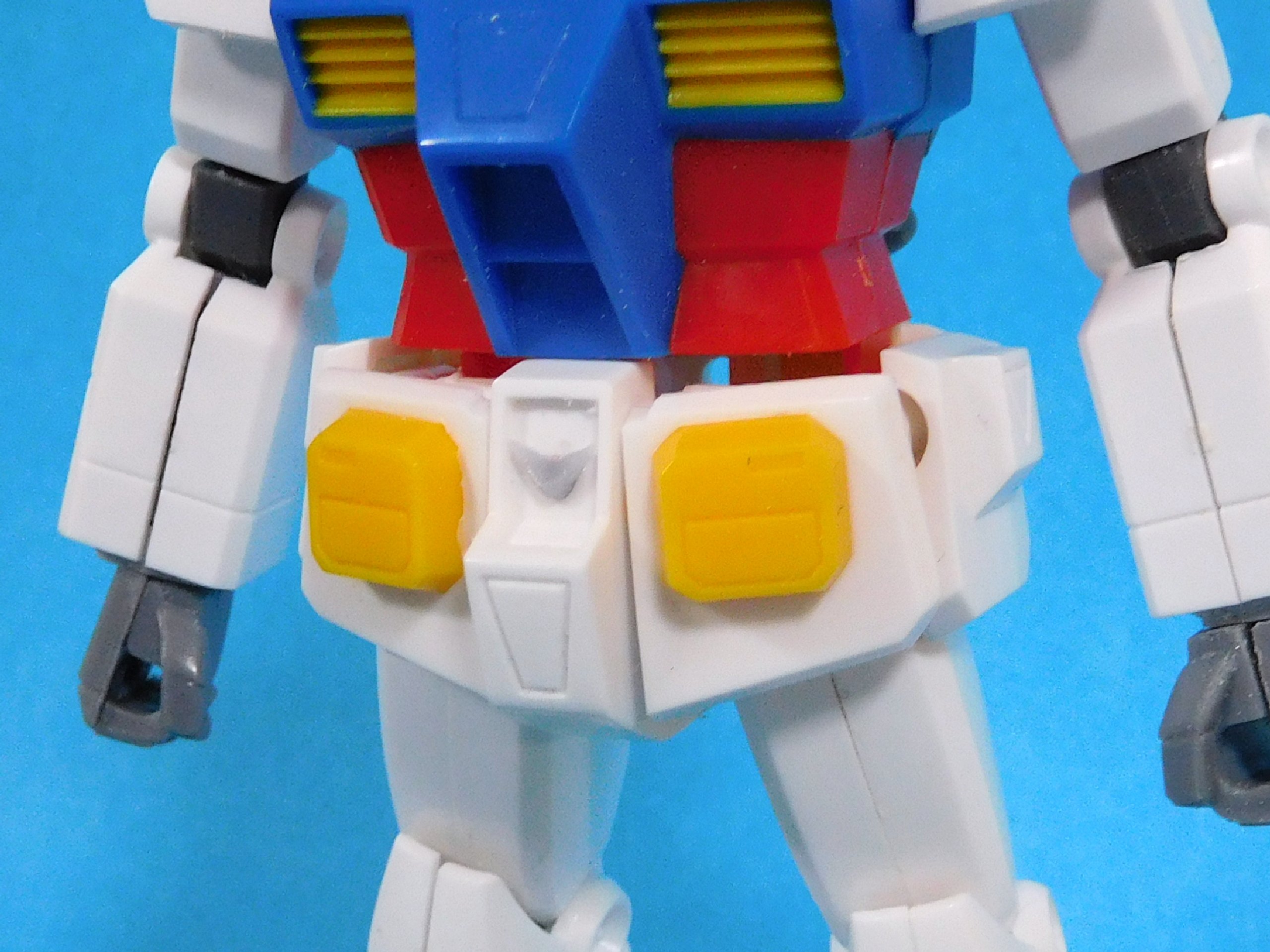 HGUCでは単にマイナスモールドだけの、足首・膝・肘の左右両側で計12個(!!)ある鋲モールドに塗り分けが必要という、塗装派泣かせのマスキングに何度も心が折れそうになりました……。