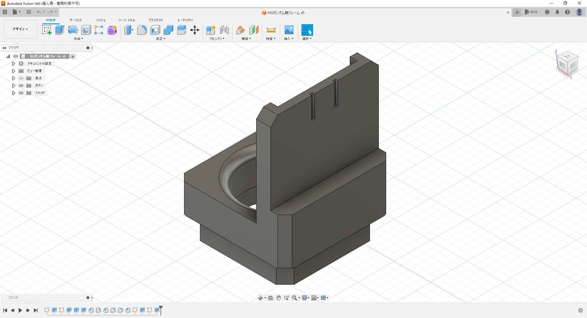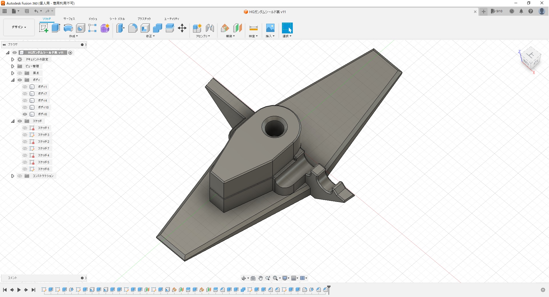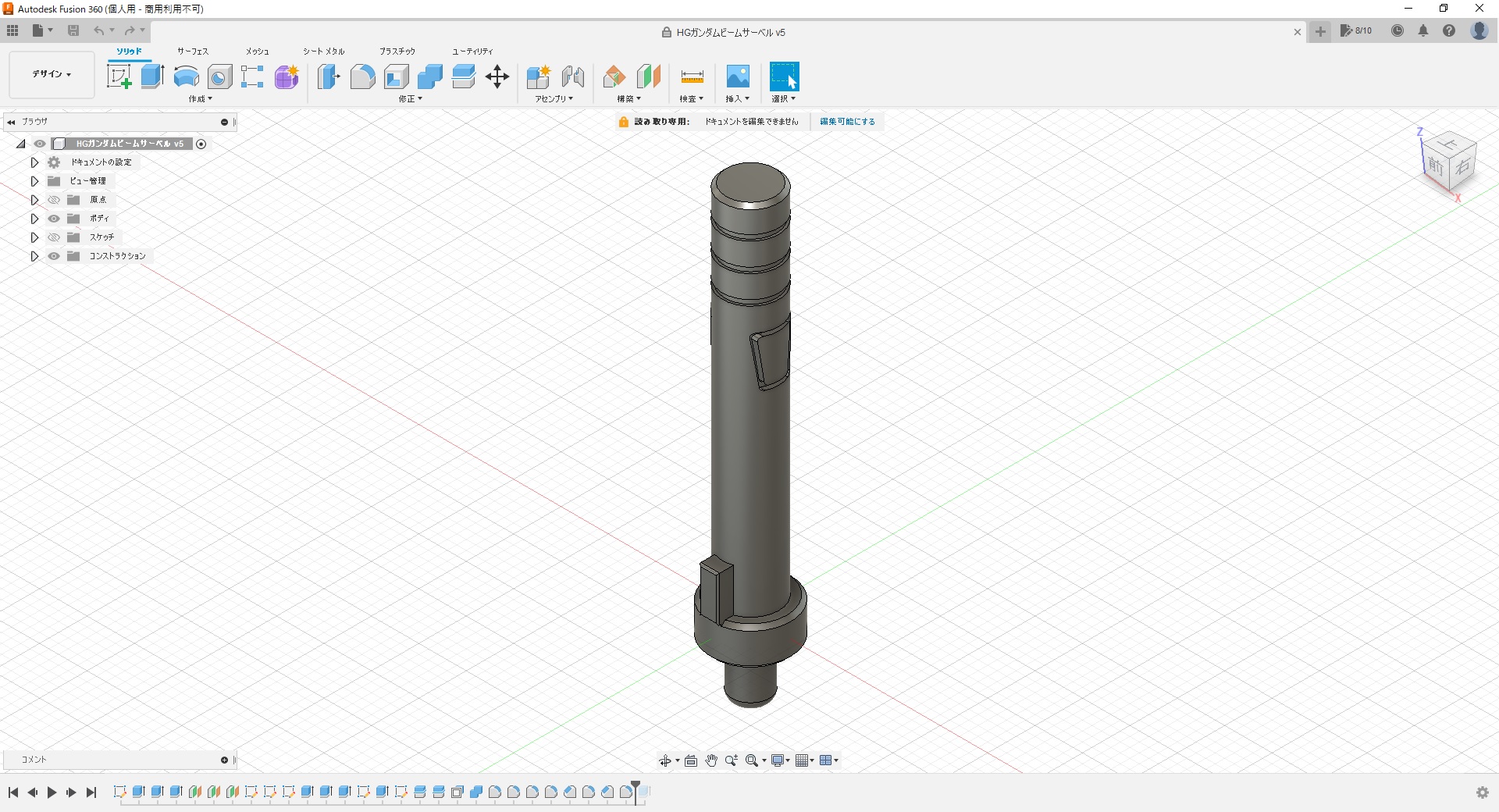 首を数㎜短くしたこともあり、横から見るとサーベルが余計に長過ぎな気が――。モールドが割とややこしく、シールド裏の予備+発光状態も含めるなら全部で5本も必要なので、ここも作り変えることにしてCADで設計。