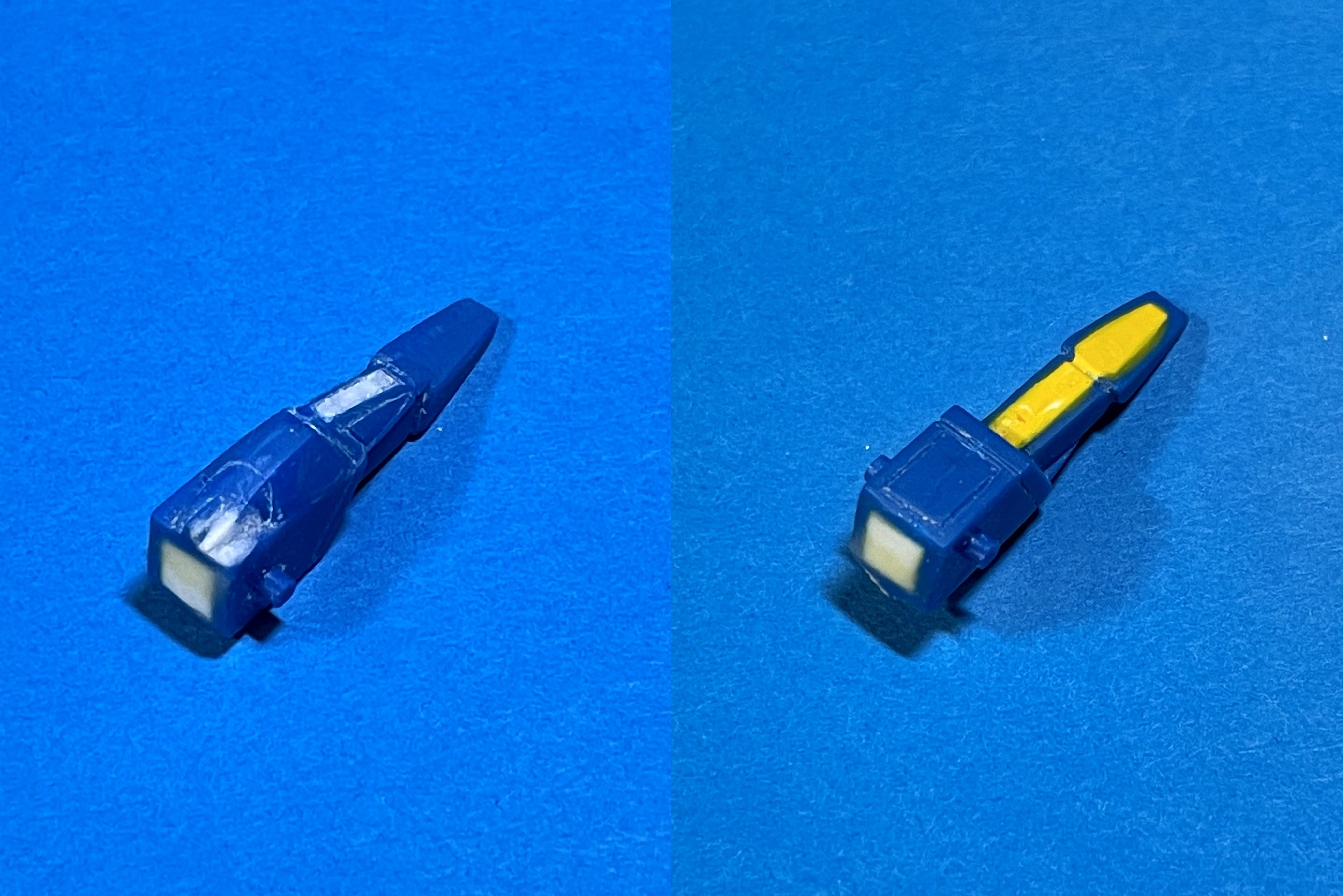 説明書の完成写真(プロによる改造品)も青でしたが、パッケージのノーマル版の完成写真は黄色だったので、こっちはそのまま黄色に(安堵)。