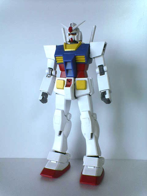 - 雨の中、ニューエアブラシで初塗装。調子を掴むまでに時間がかかり、あまりはかどらず(疲)。それでも完成率は50%!段々ガンダムらしくなってきた。頭部は接着中。