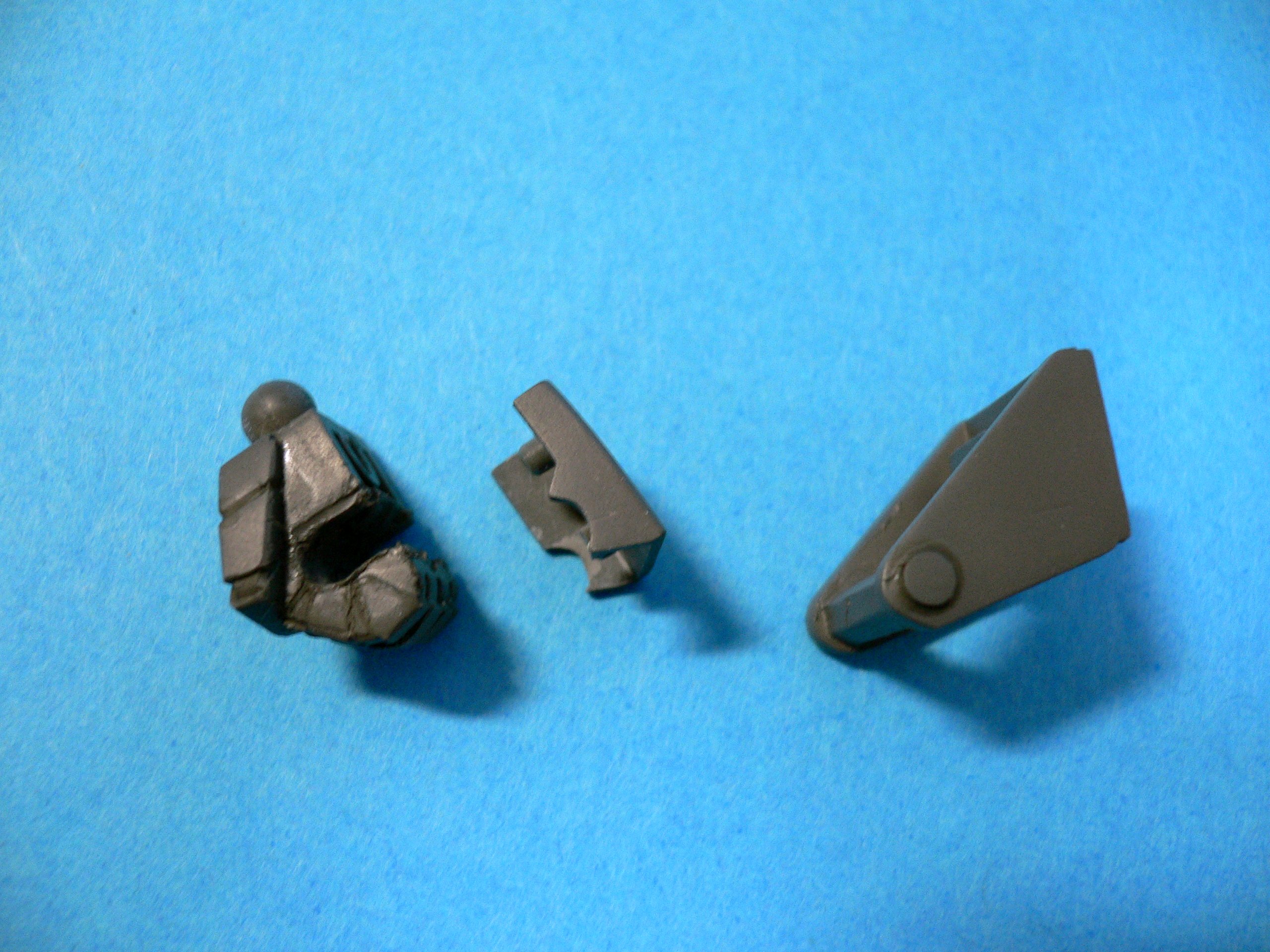 - 頭部一部塗装。脚部・腰部ペーパーがけ。またまた新規にシールドグリップ製作(接着)。