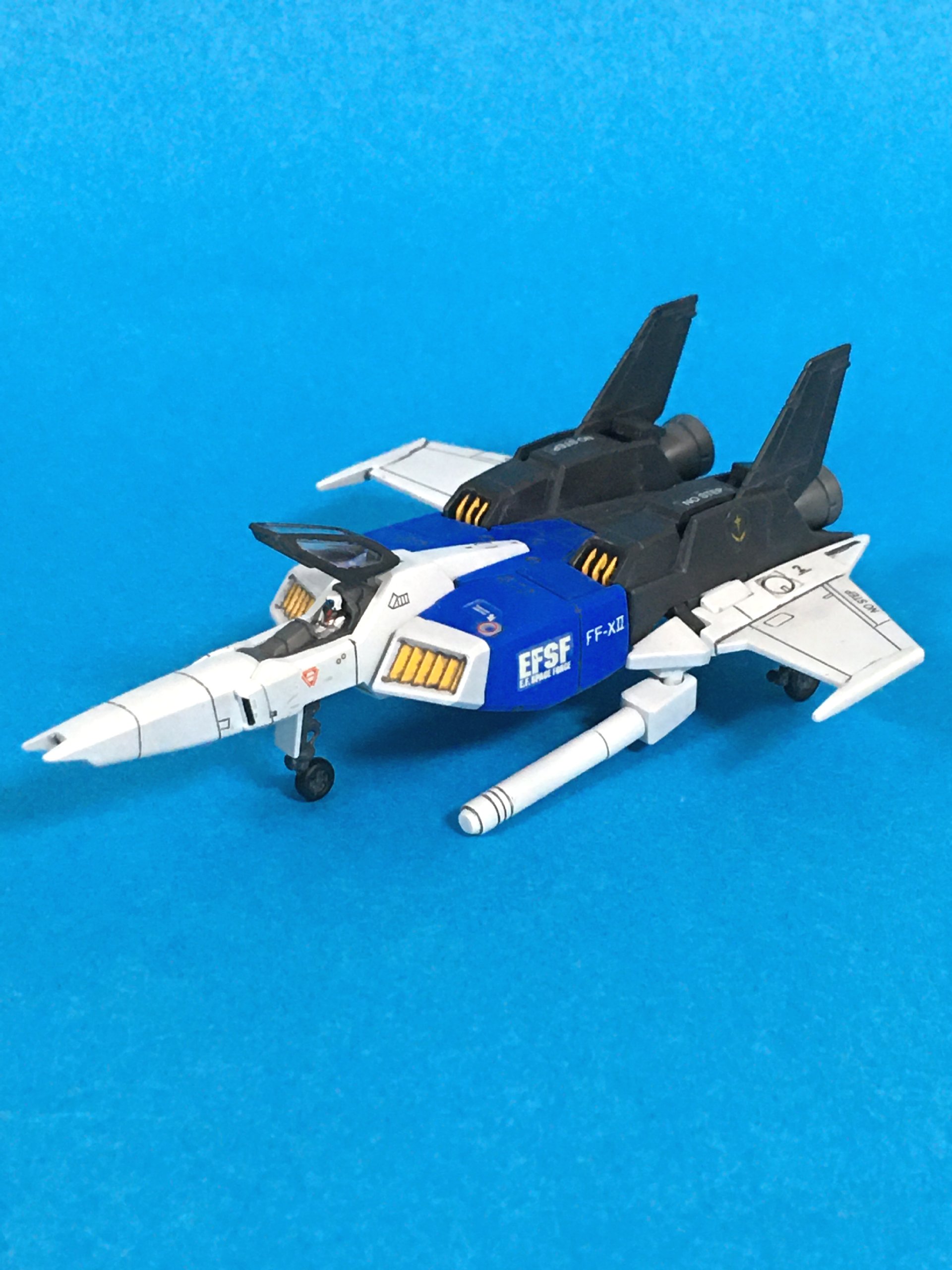 - やっとカゼが全快したので仕上げを行った。溝が多いので、スミ入れというよりは塗装、という感じ。かなり時間がかかってしまい、コアファイターまでは手が回らなかった。こちらはまた次の機会に……。一応これで完成!!