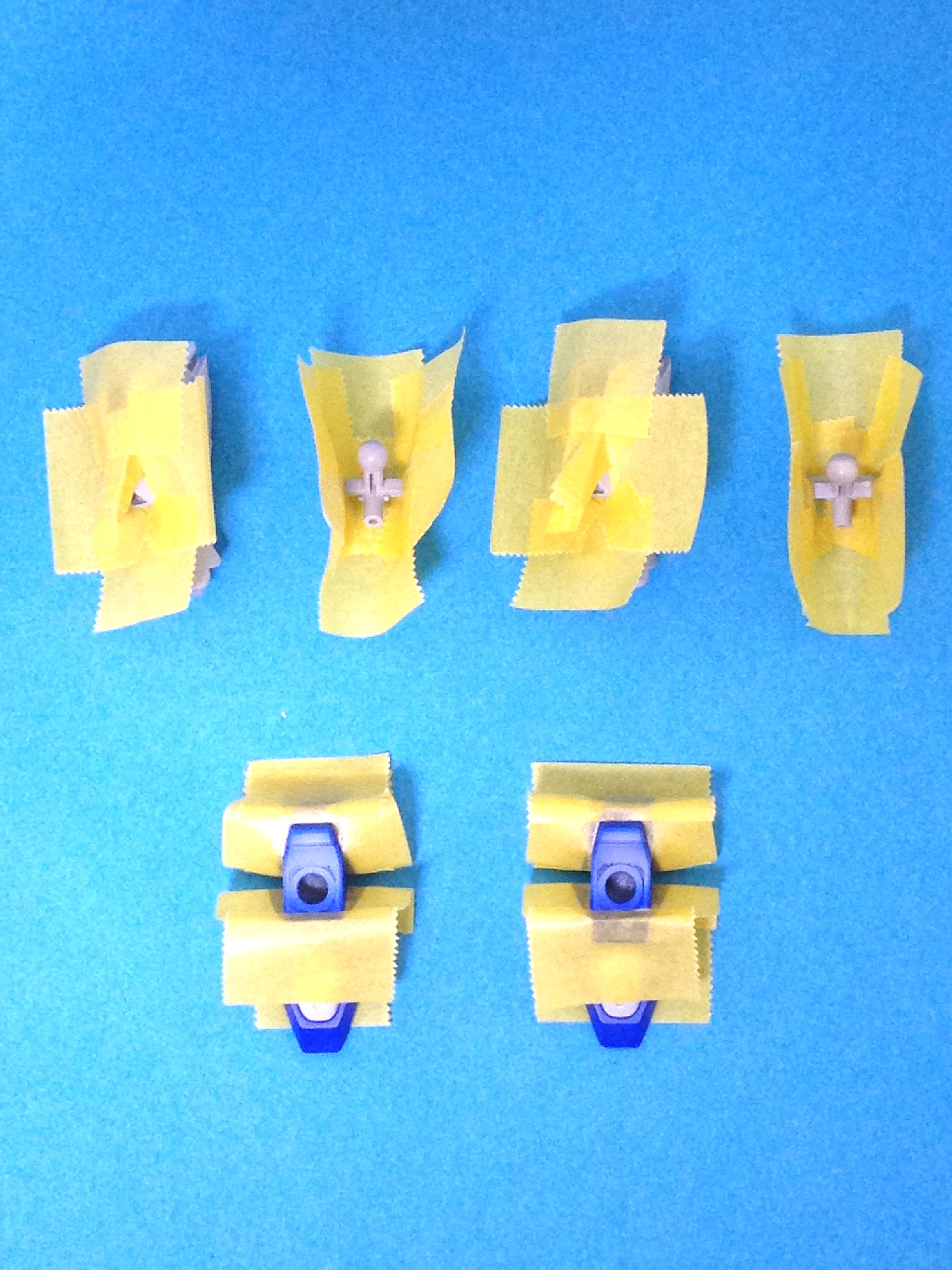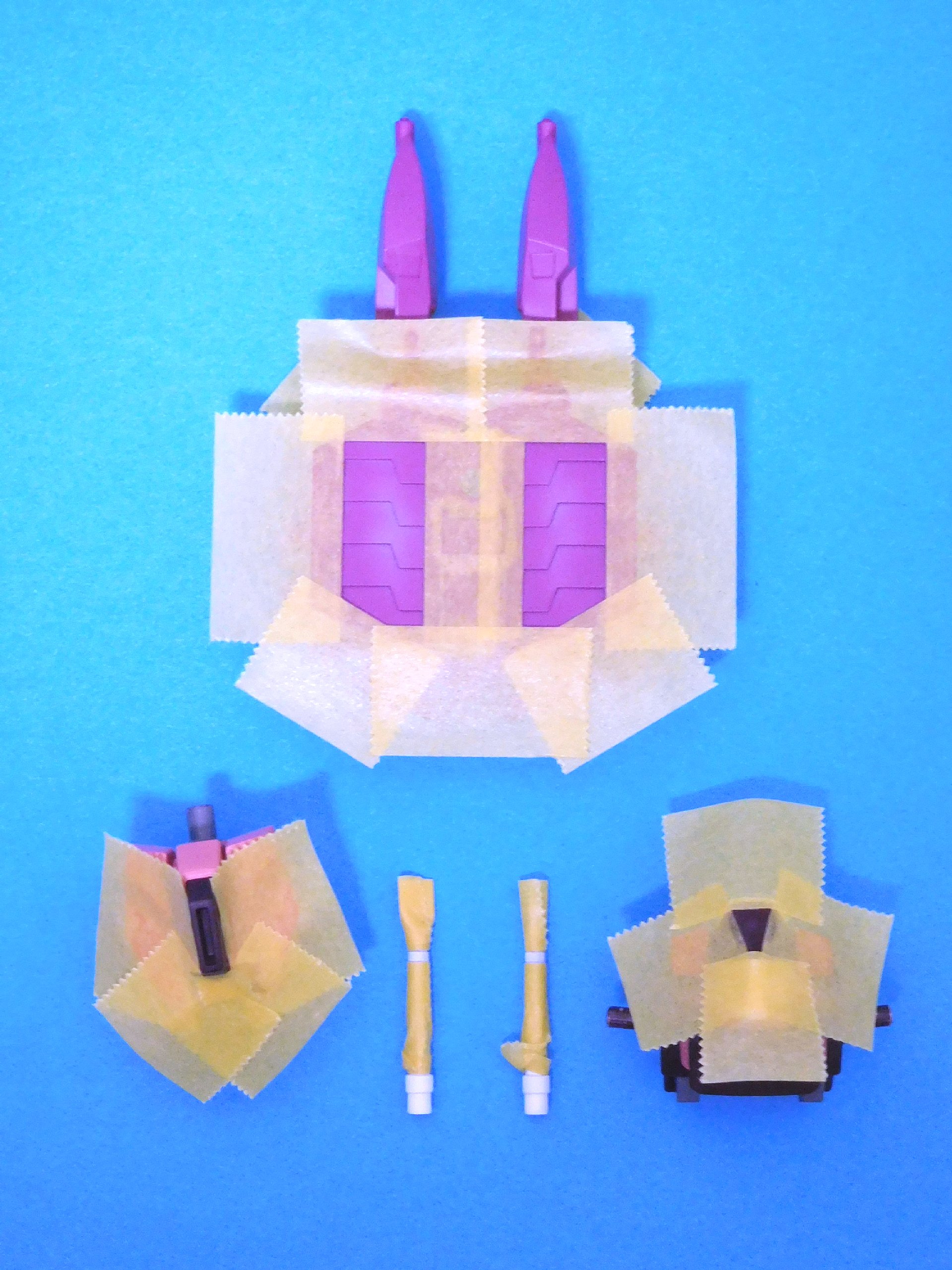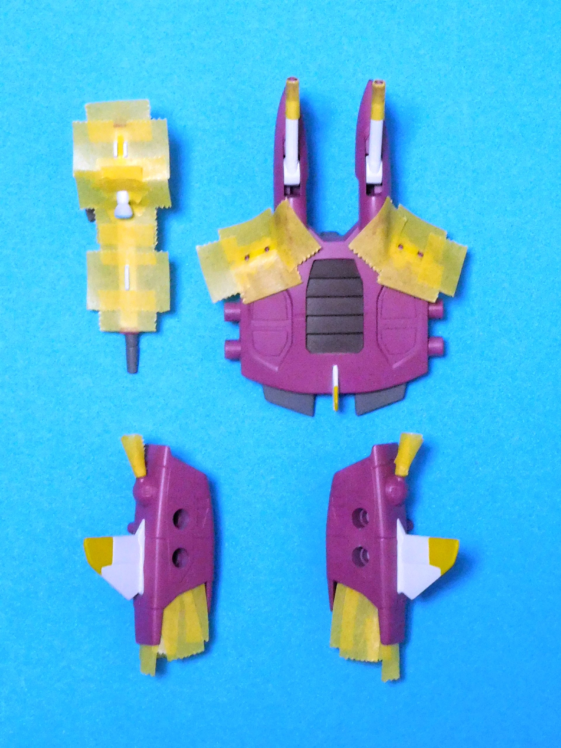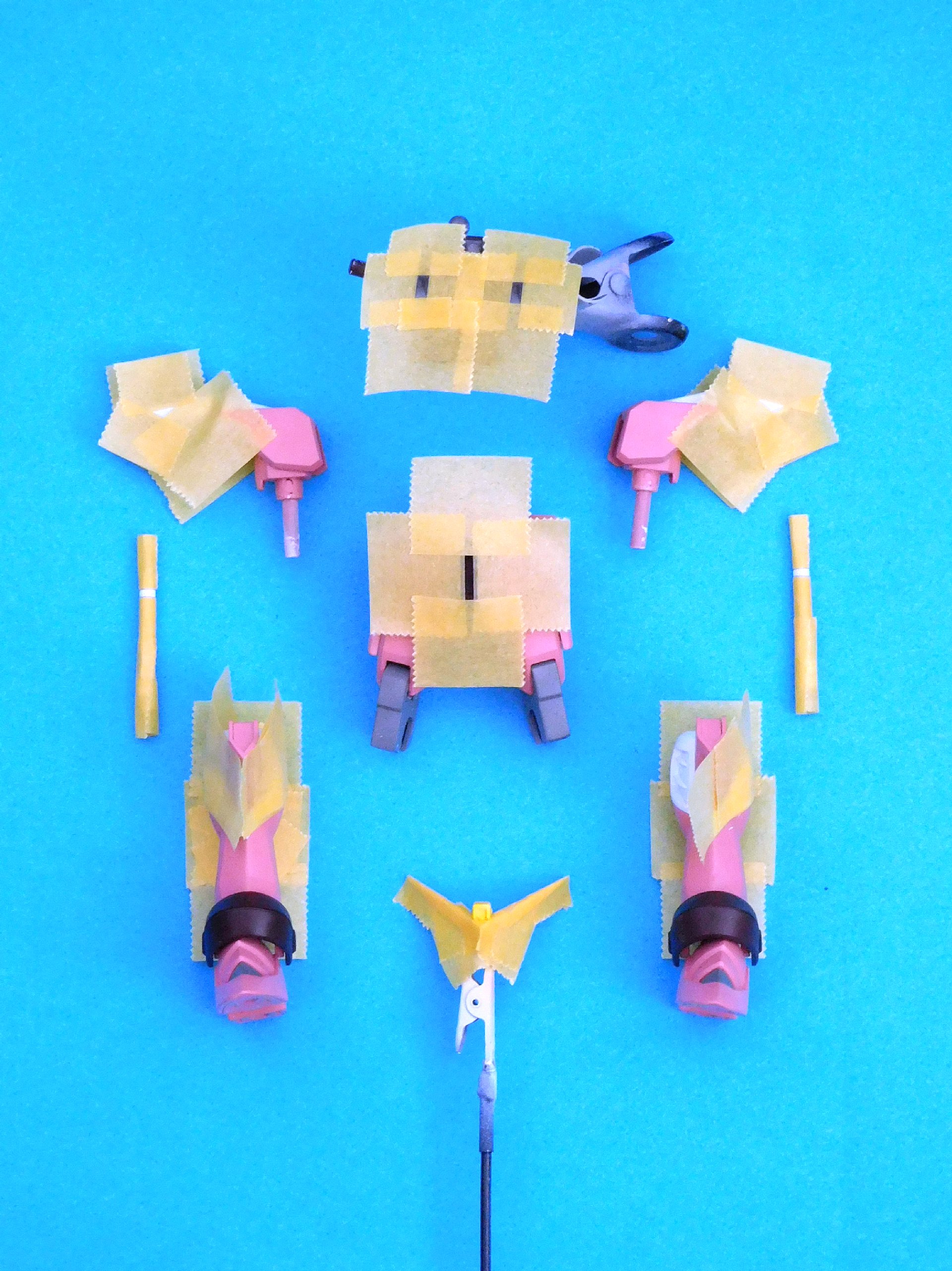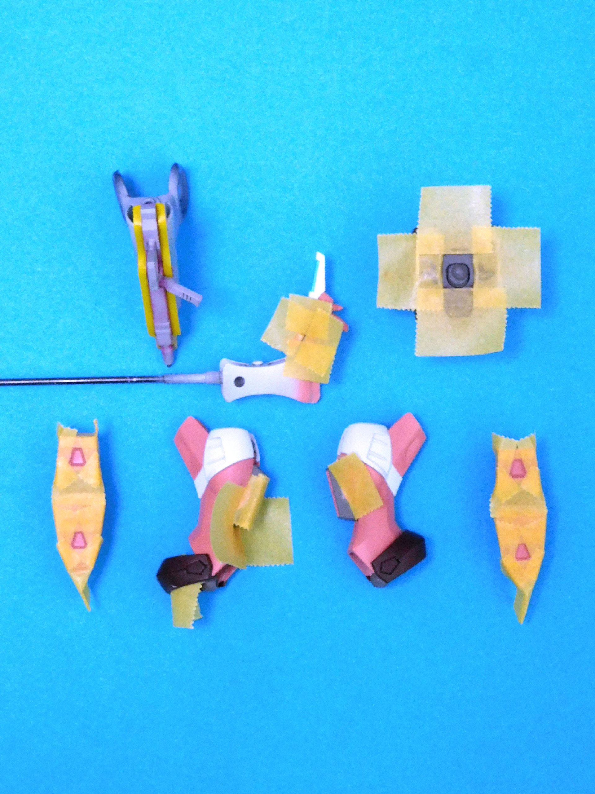 - 肩・スネに、サフ吹きのためのマスキング。面倒くさ(涙)。