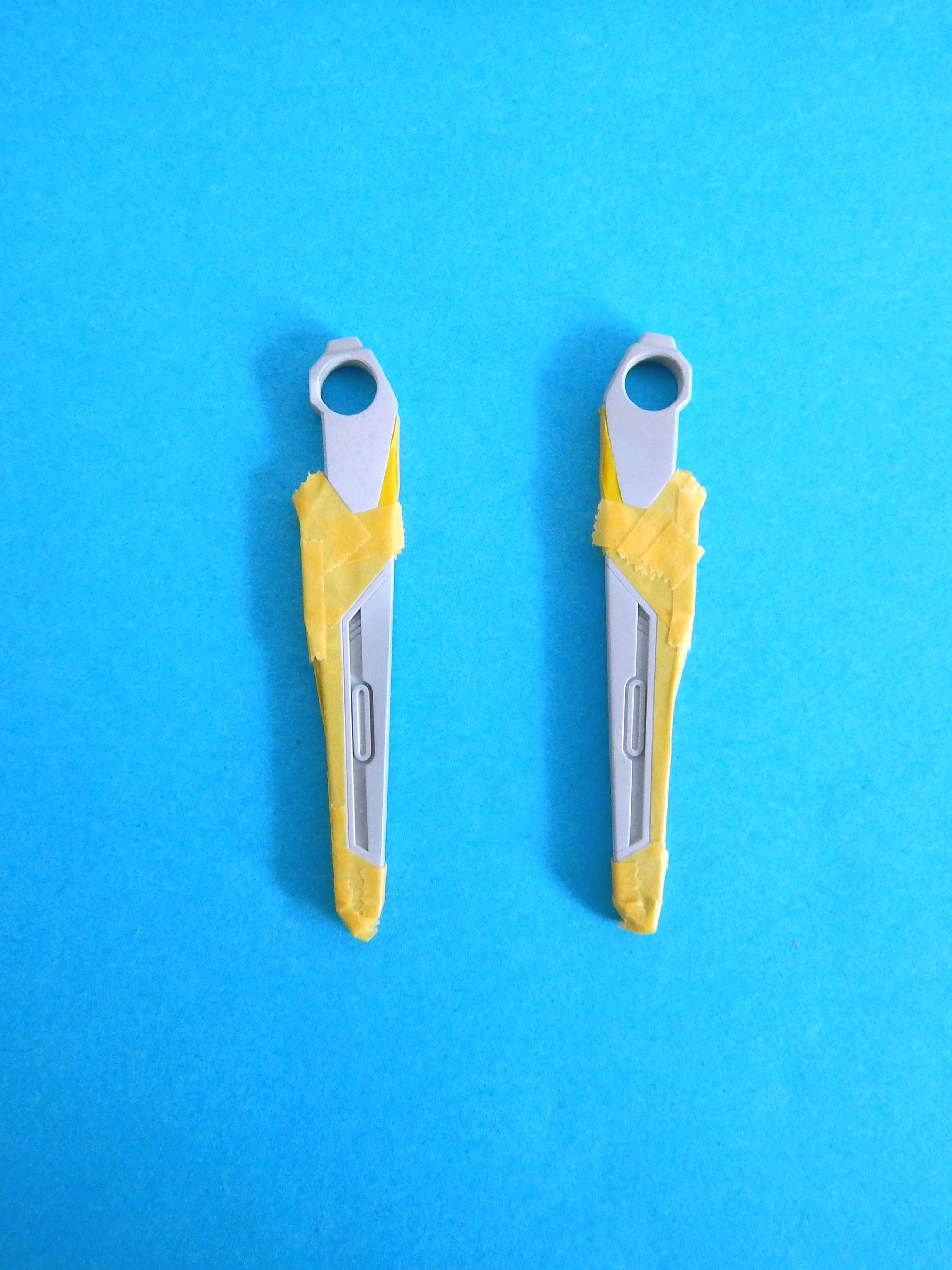 - 引き続き各部を製作。足首に重り。足首・ビームガン・レールガン・ライフルを接着中。