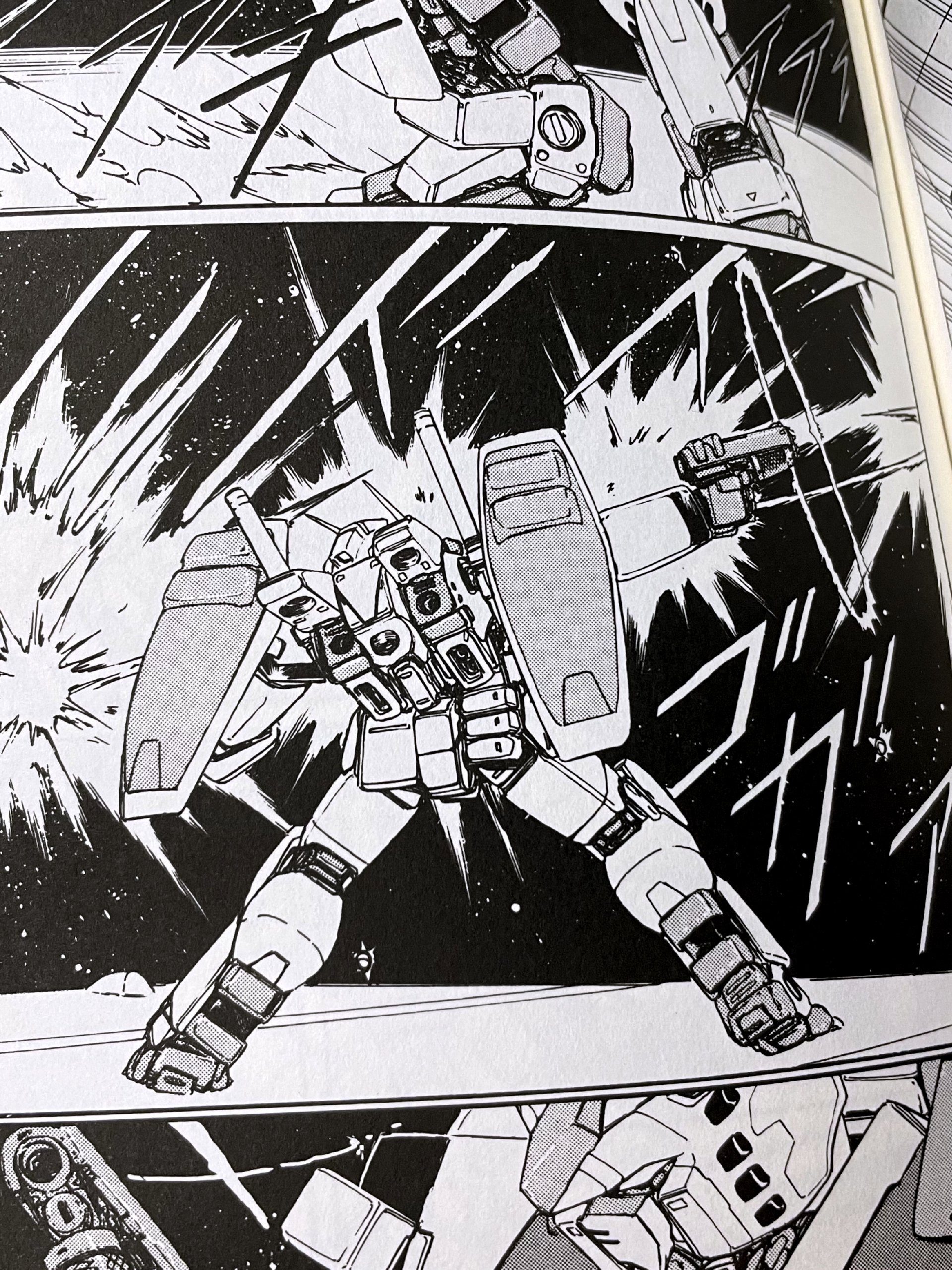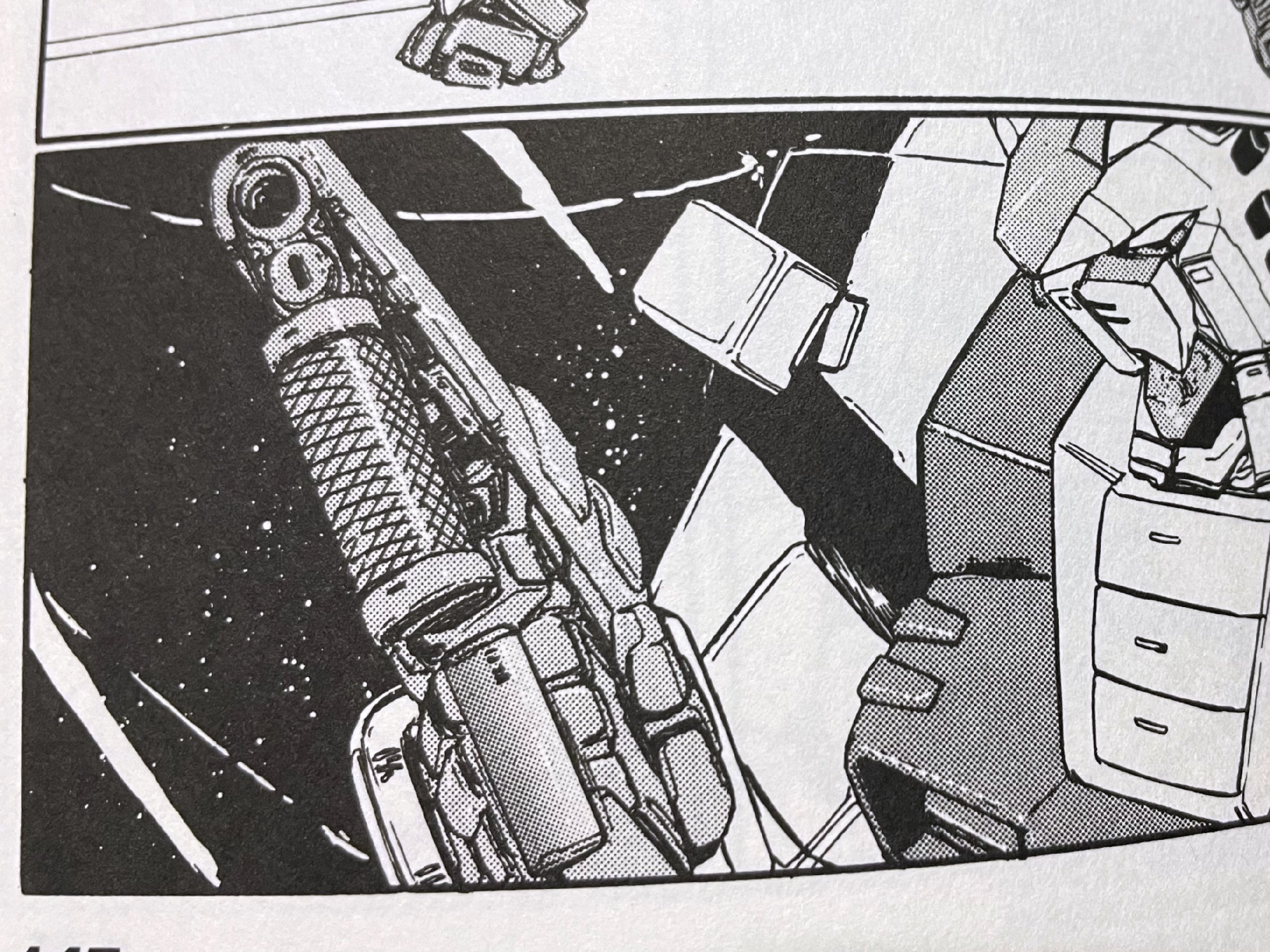 RX-79 EX-PH-1 と、コミックスの見開きには書かれていますが、劇中では単にRX-79EX-1とだけ書かれてたりして、実のところ制式番号さえもは定かではないMS(苦笑)。