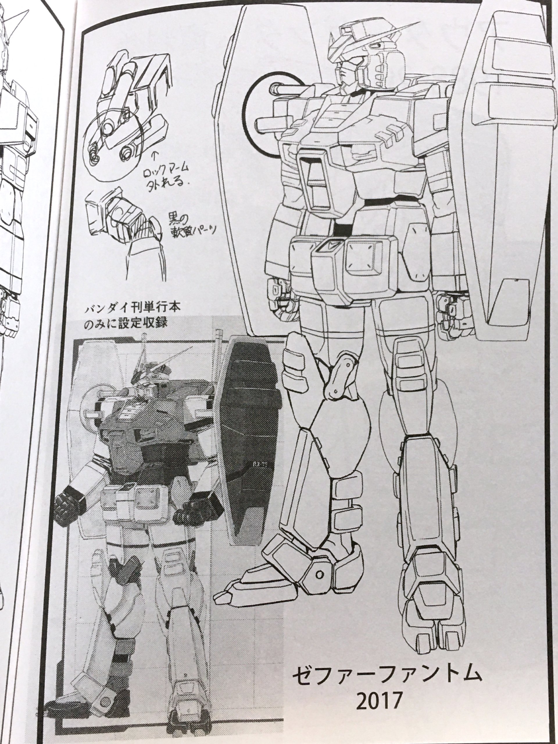 『ゼファーファントム』という呼称については、劇中では『ゼファーガンダム』という名称でしっかり登場するのですが、当時は『ガンダム』というワンオフ機体が何機も存在することに作者が抵抗があったらしく(今では全然普通ですけど)、『ガンダム』の代わりに語感が似ている『ファントム』という言葉を意識的に使用していたそうです。時代ですね(笑)。