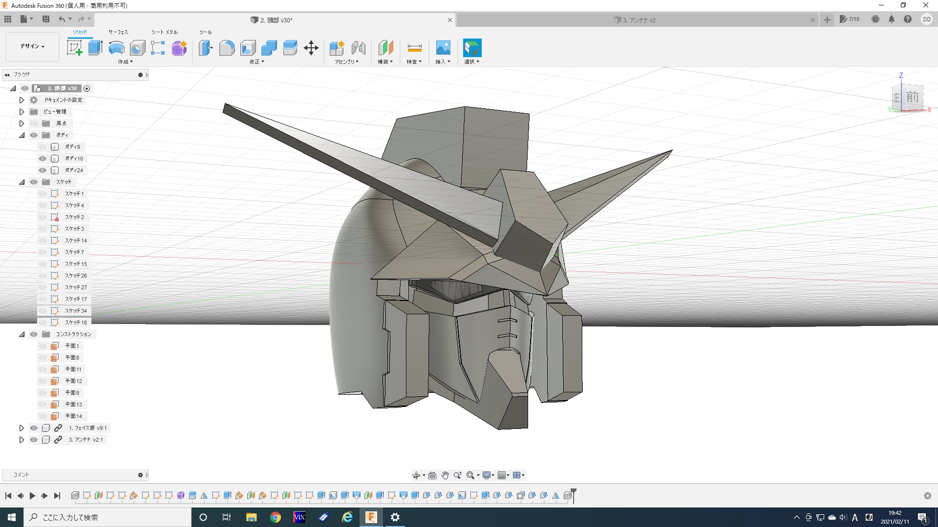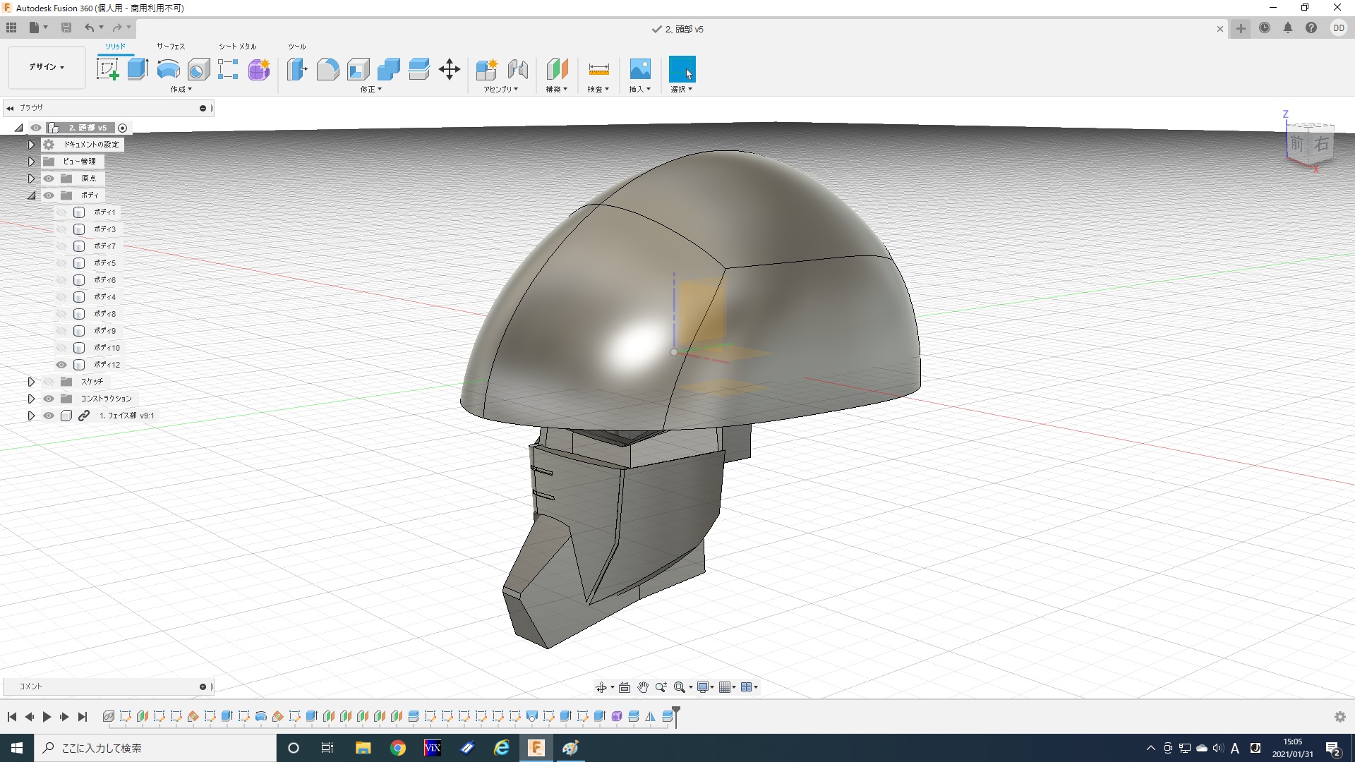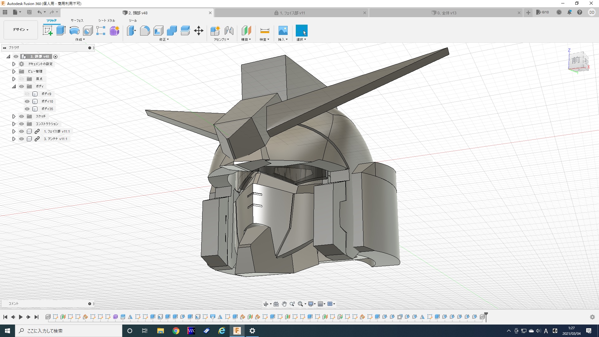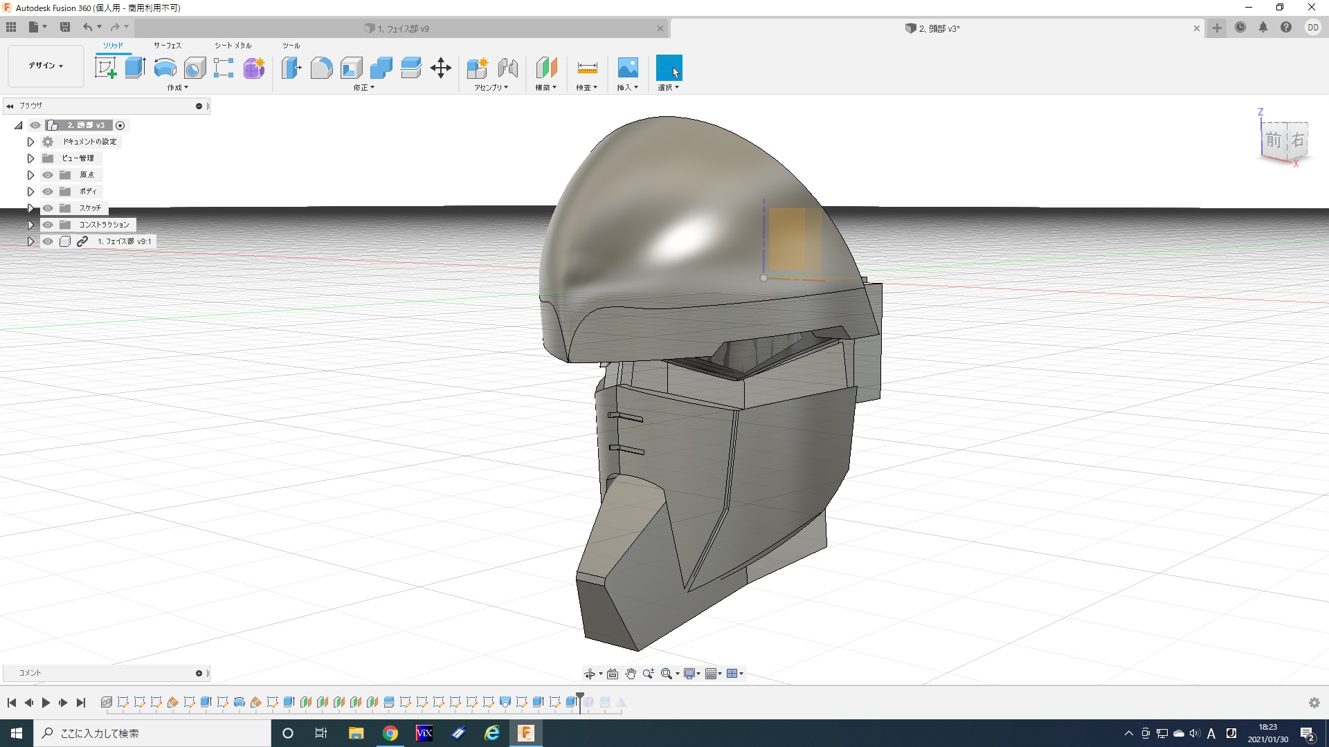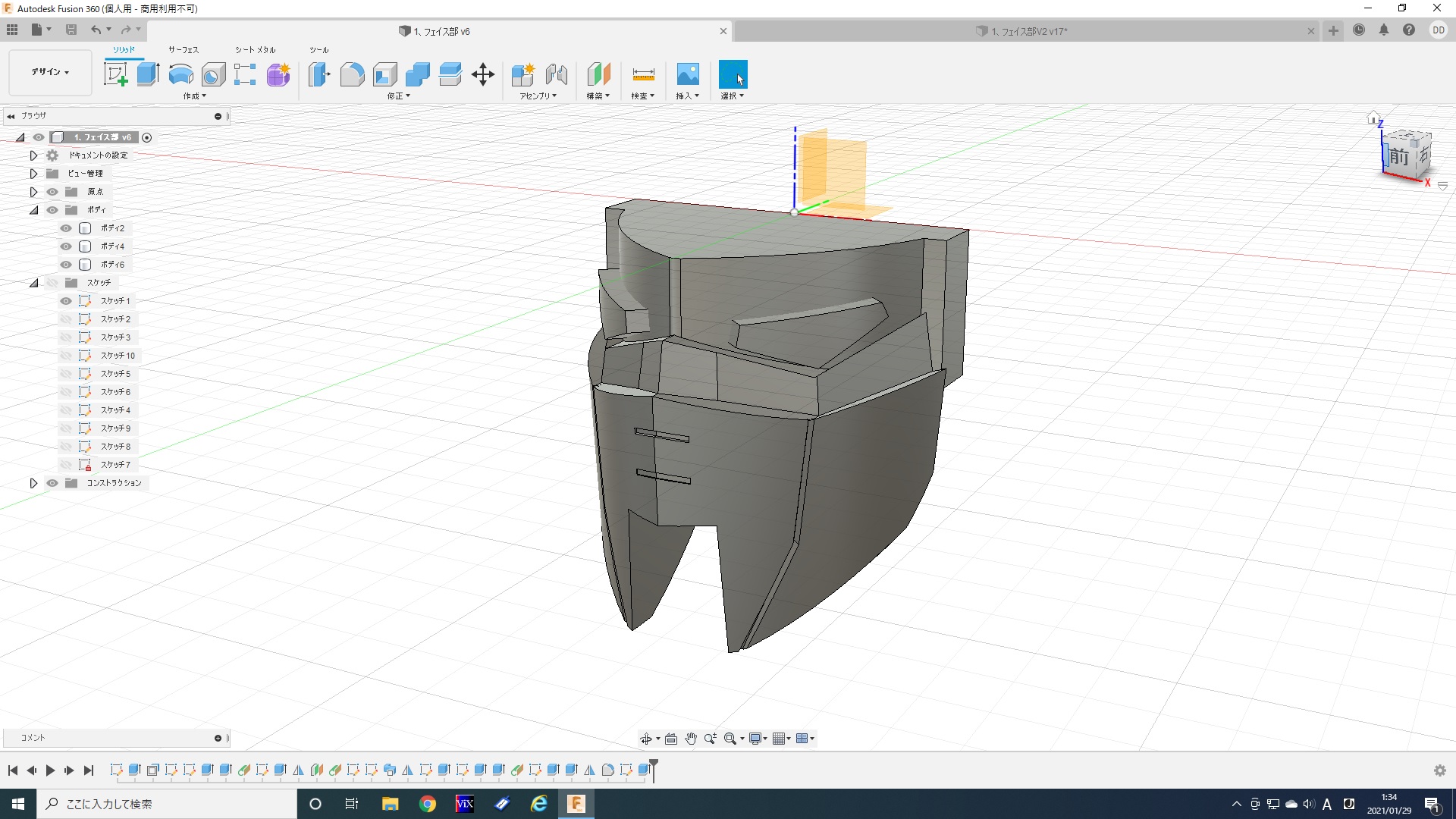 プリンター出力の都合上、ディテールを追加してもそんなに変わらない(指紋より小さい)と知ったため、一旦顔はここまでで。 - 2021/01/30
