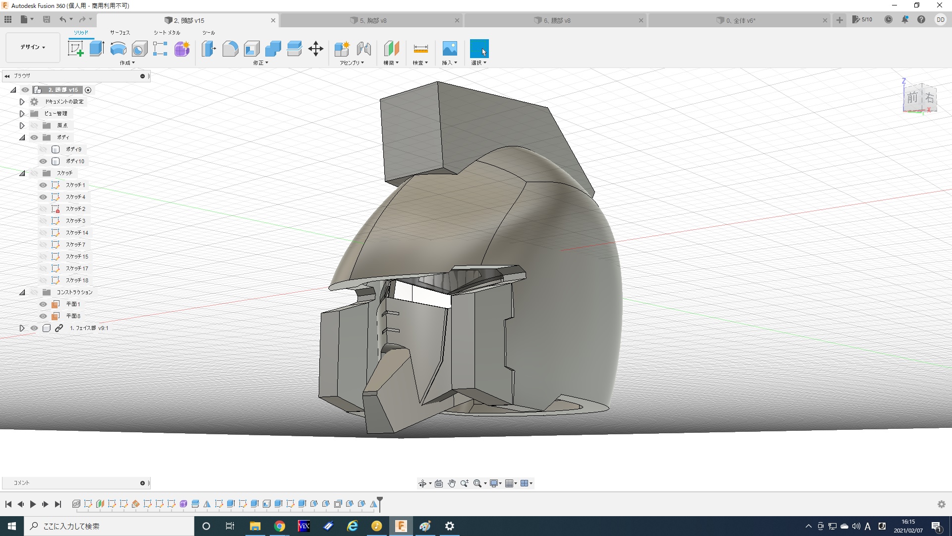 - フェイス部の大まかな作成の後は、頭部に突入。