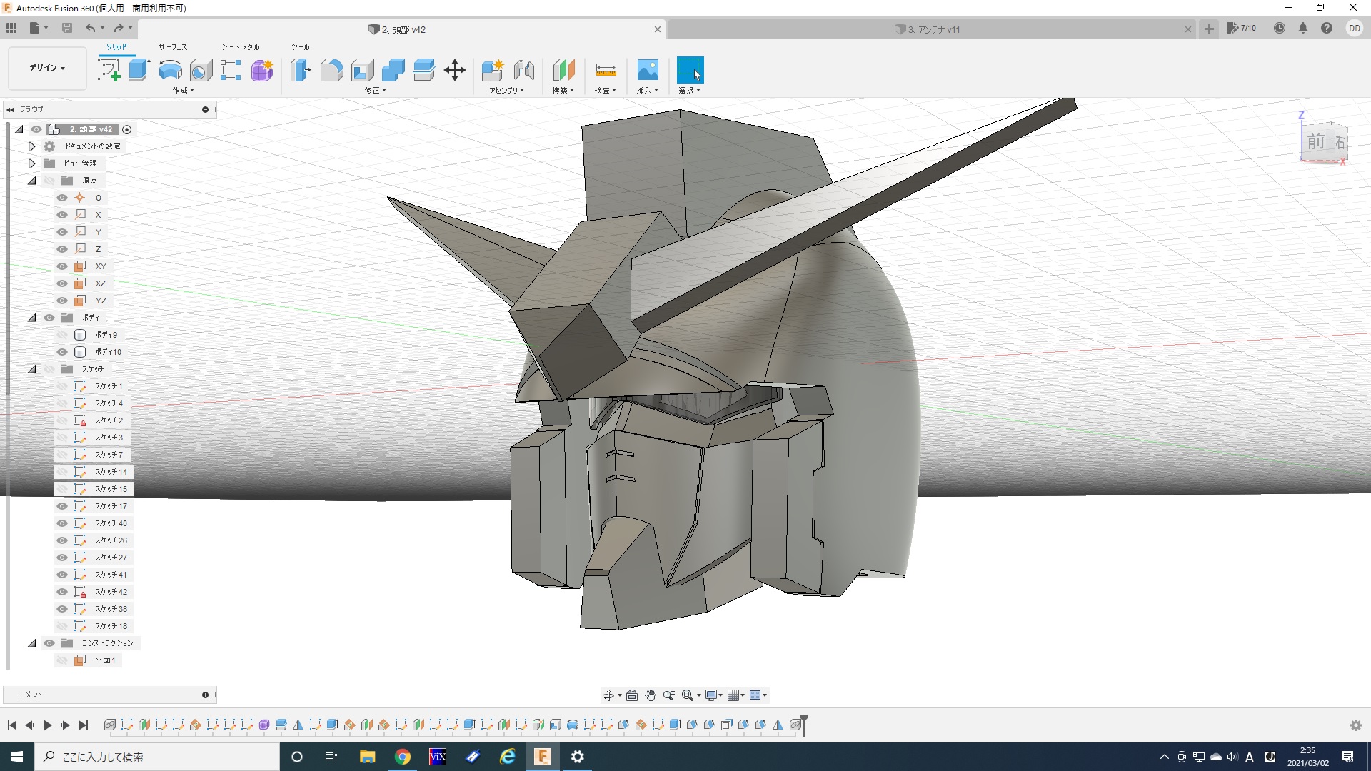 - 頭部ディテールの追加と修正。リアカメラ近くにモールドを追加、バルカン砲の形状を修正しました。