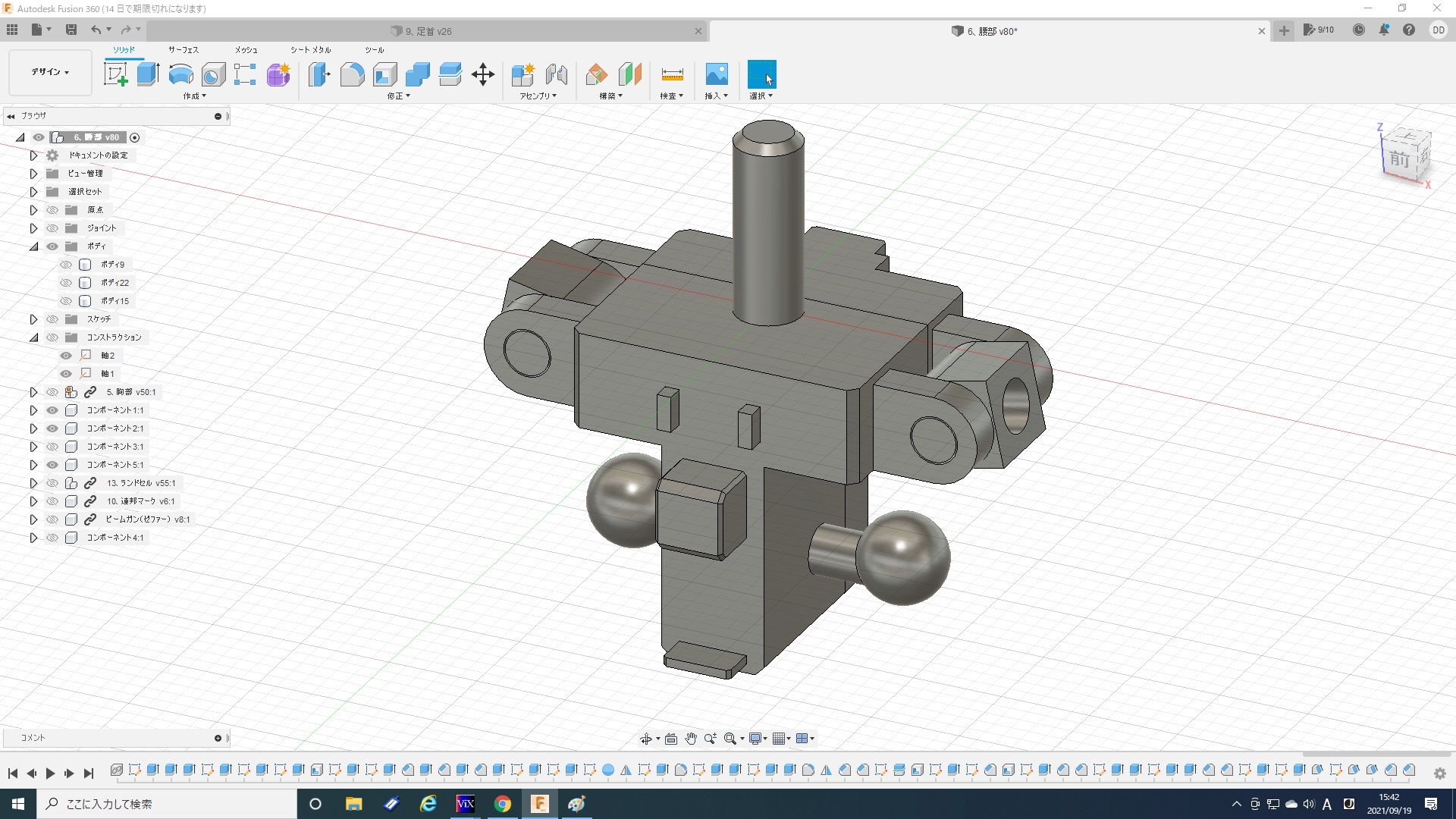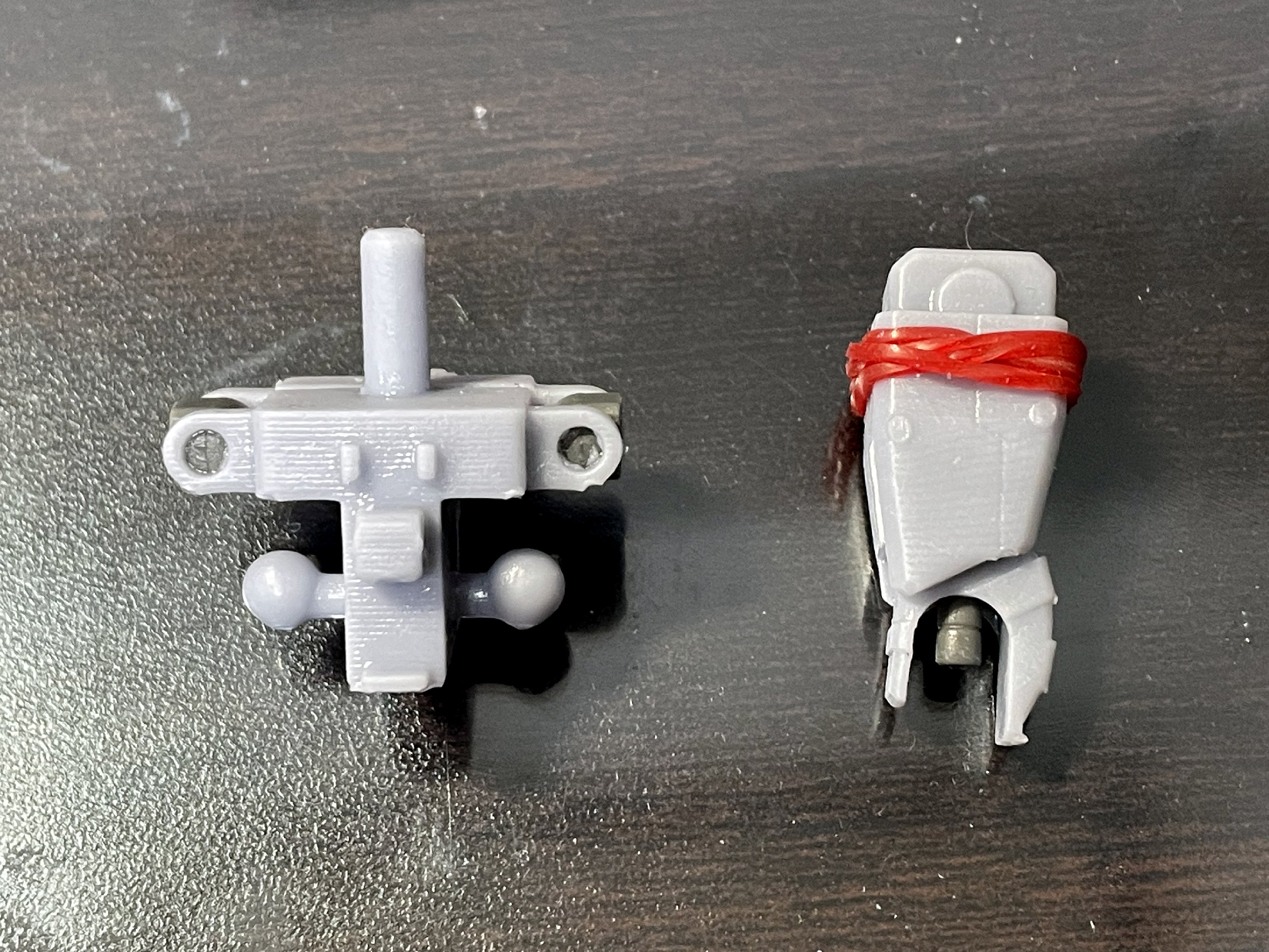 - 連休中に出力した新造股関節に脚を取付け。