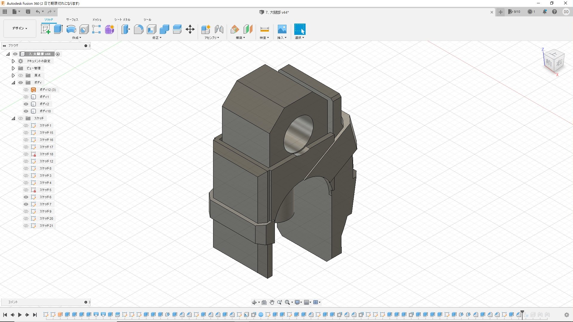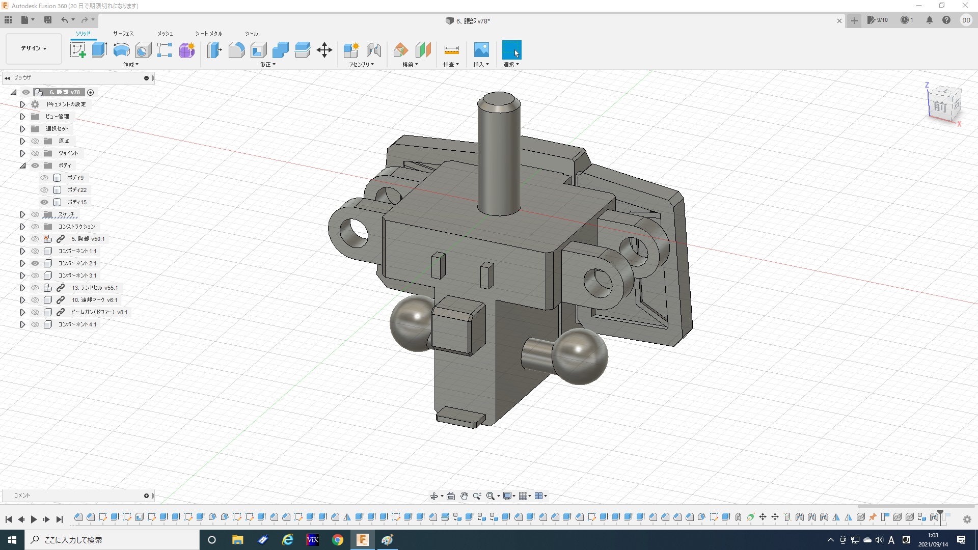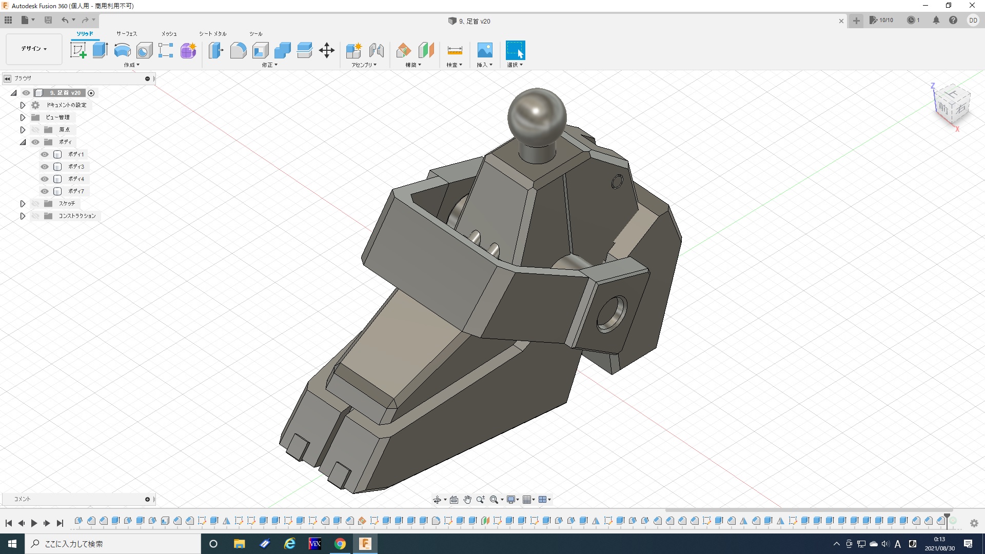 実はこれでも1/5程度にまで面を減らしてます。最初は一つ進むだけでも数分かかったりフリーズしたりと計算が重すぎて、全然やってられないレベルですごく悩みました。ま、ゴムみたいに見えなくもないから、いっか。と、なんとか自分を励まし(ごまかし)、ここで落ち着いた(Give Upした)感じです。トータル6時間。『Fusion360』を始めたばかりの頃を思い出しました(苦笑)。