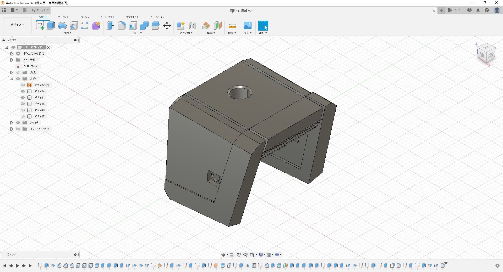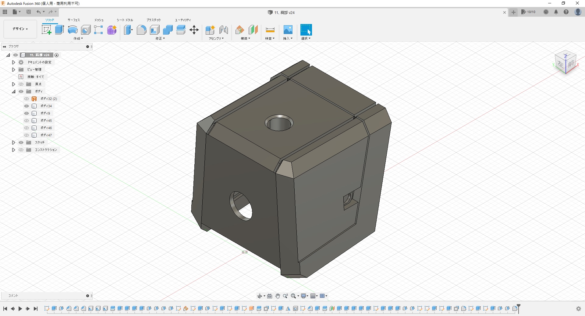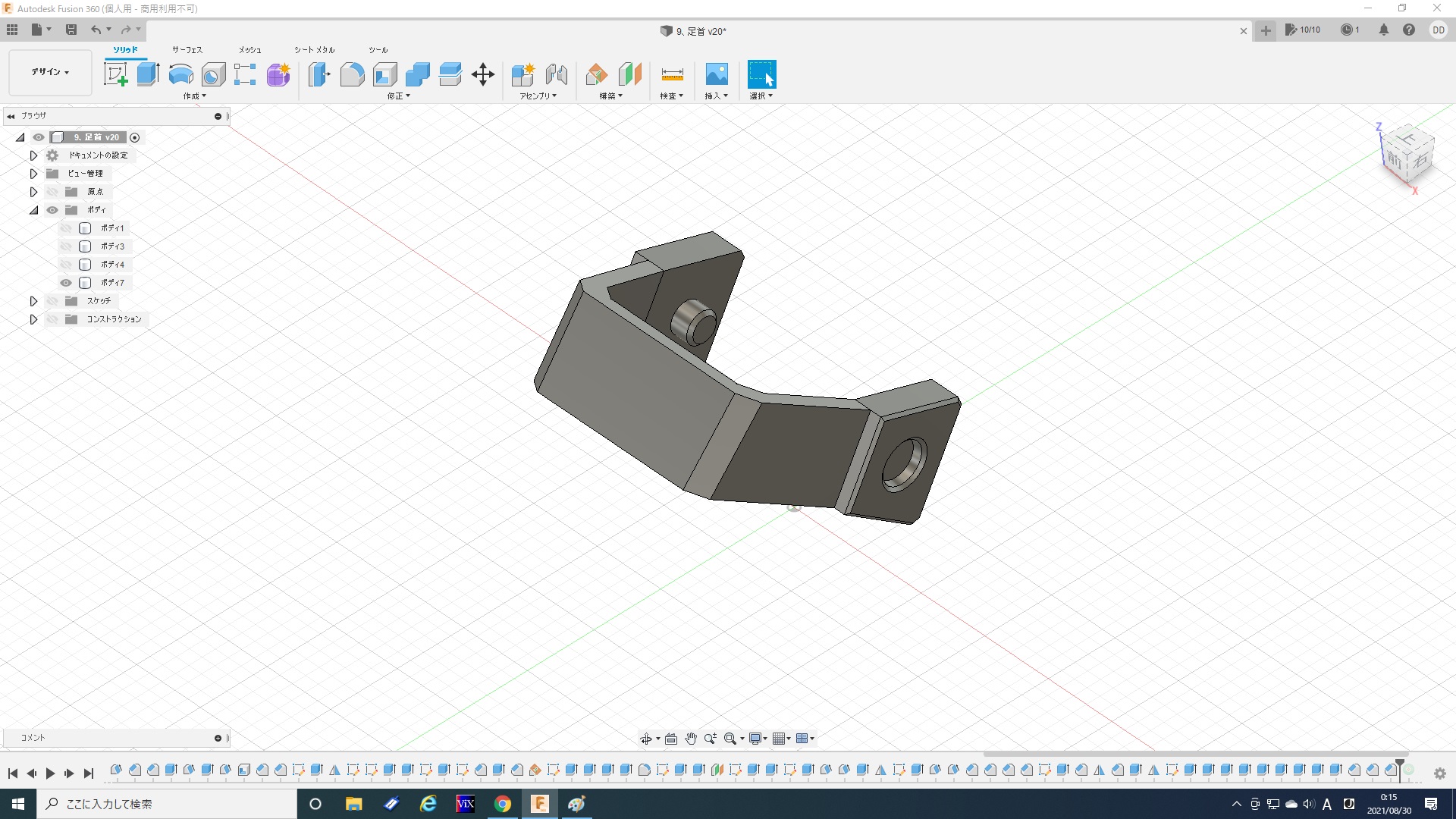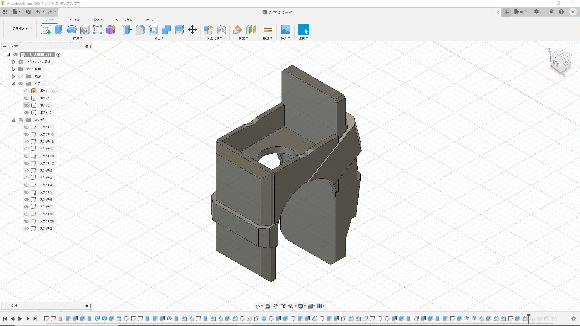 実はこれでも1/5程度にまで面を減らしてます。最初は一つ進むだけでも数分かかったりフリーズしたりと計算が重すぎて、全然やってられないレベルですごく悩みました。ま、ゴムみたいに見えなくもないから、いっか。と、なんとか自分を励まし(ごまかし)、ここで落ち着いた(Give Upした)感じです。トータル6時間。『Fusion360』を始めたばかりの頃を思い出しました(苦笑)。