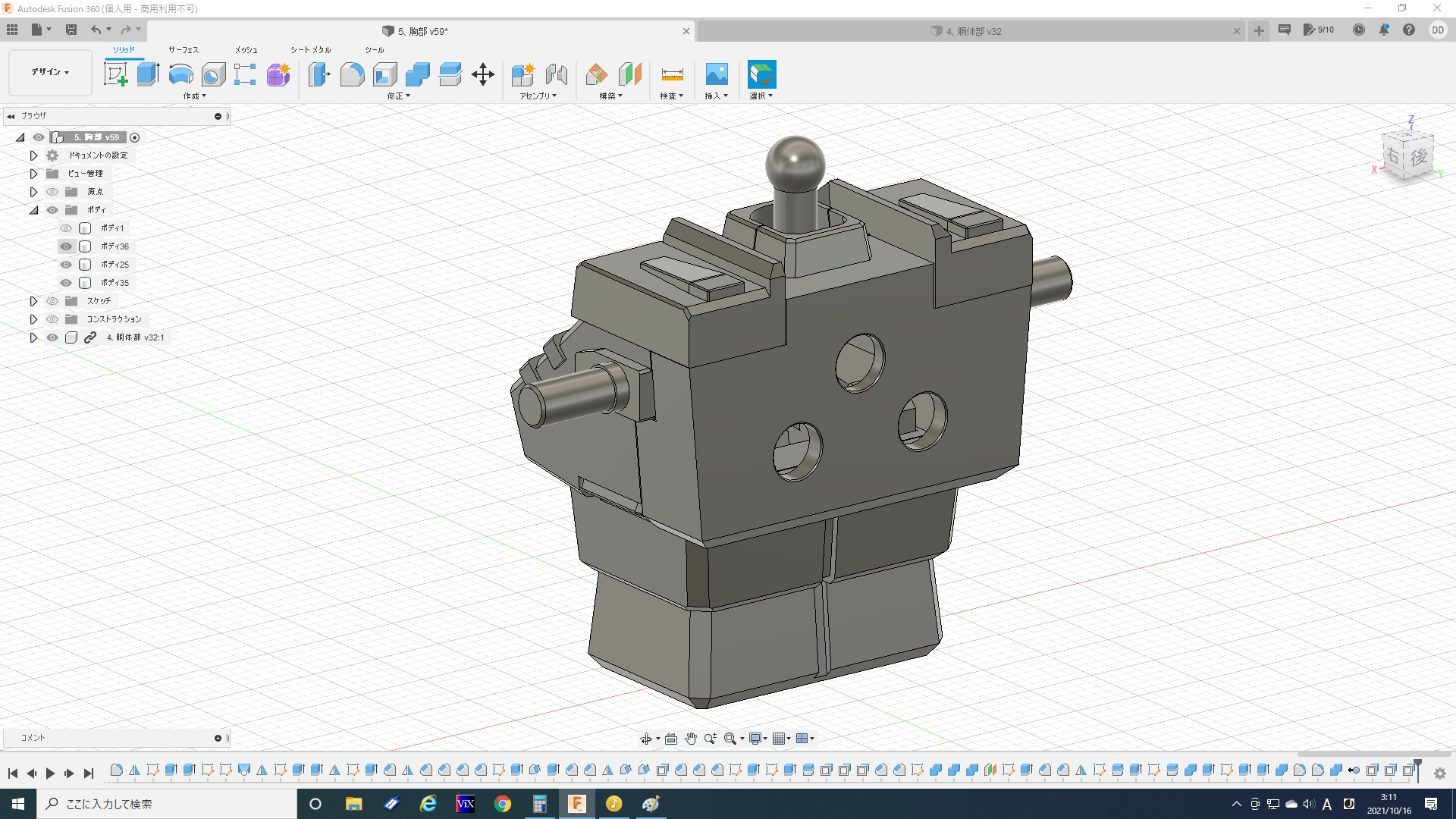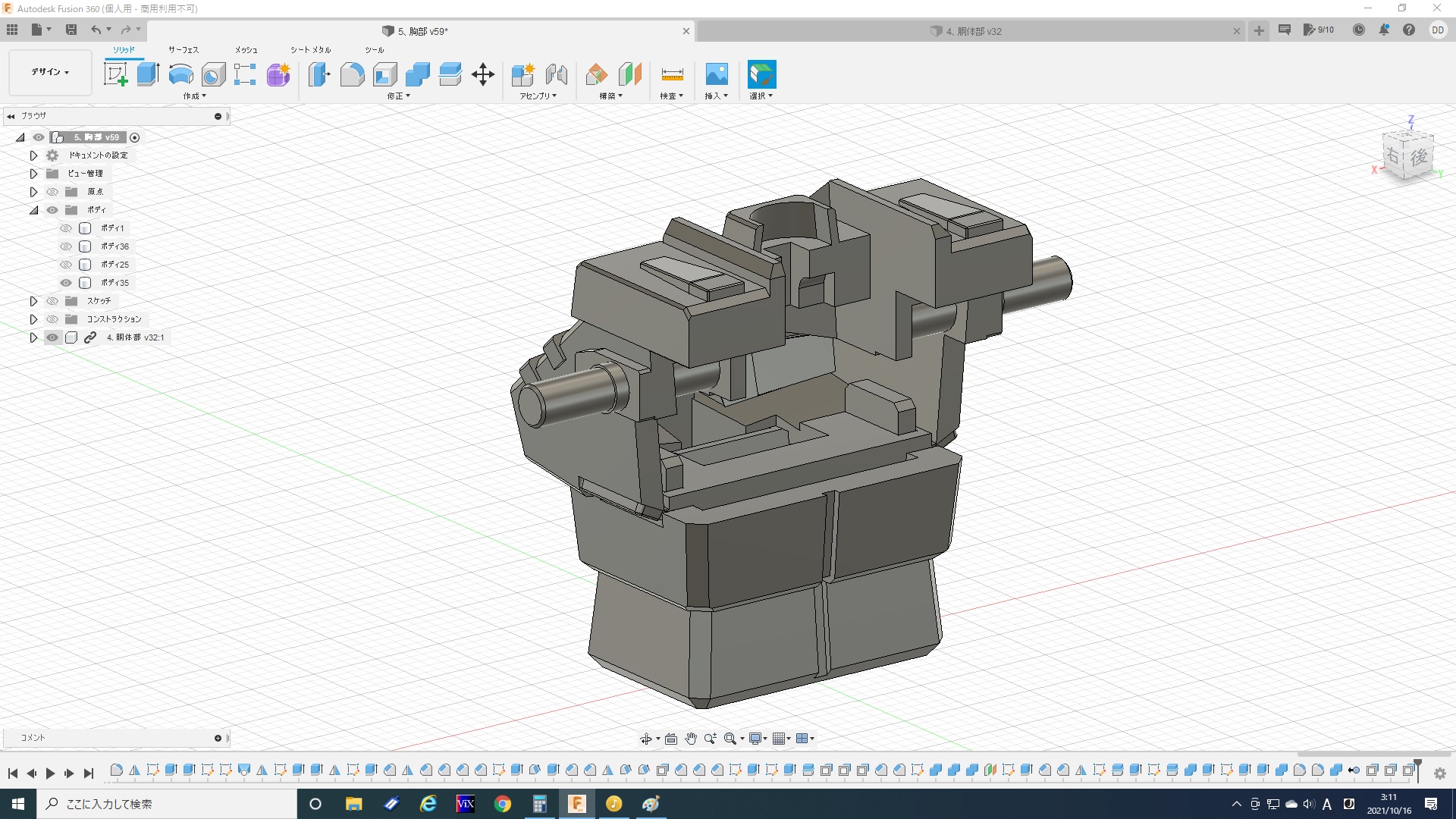 腹部はこれにて完成ですが、今度は胸部と接続させるのが結構大変――。 - 2021/10/01