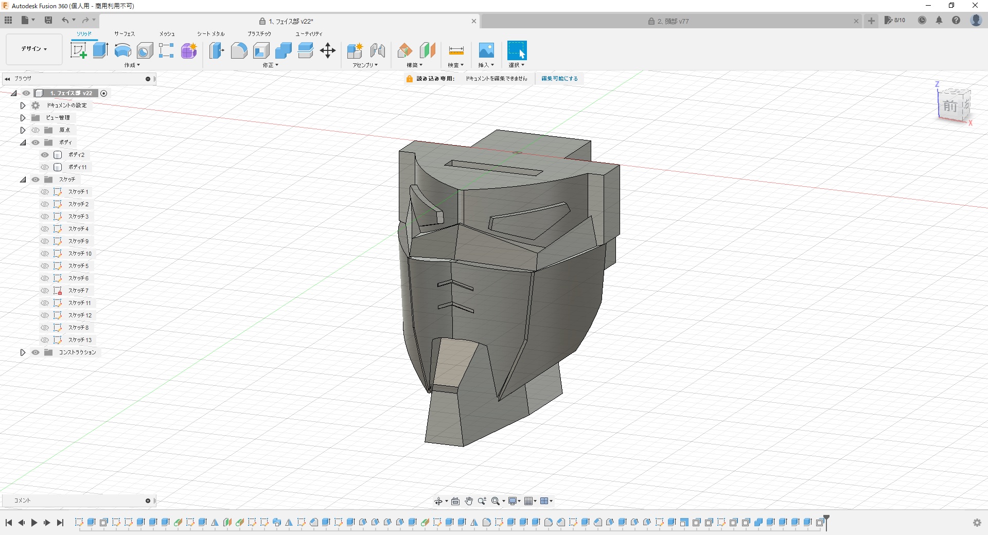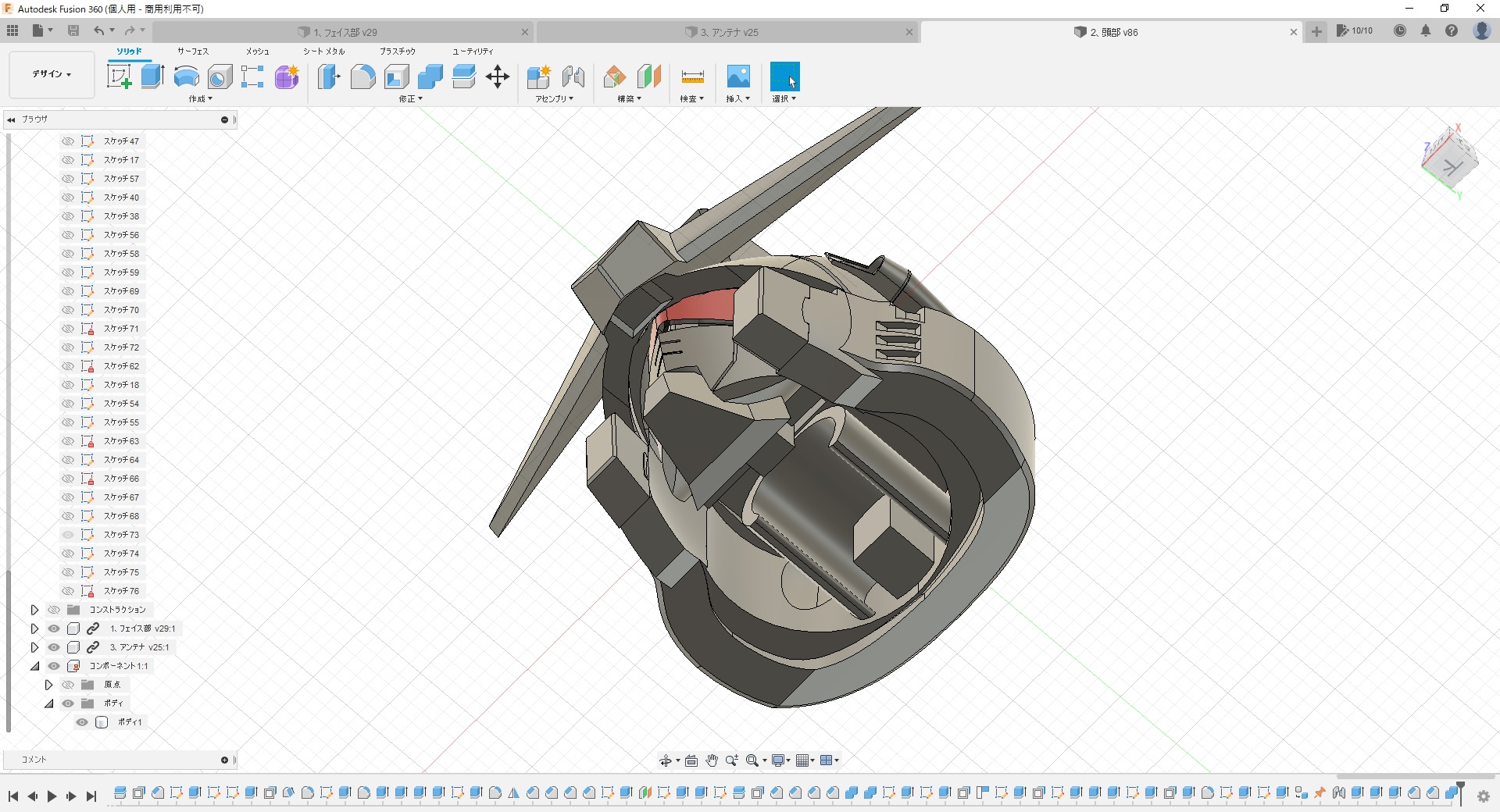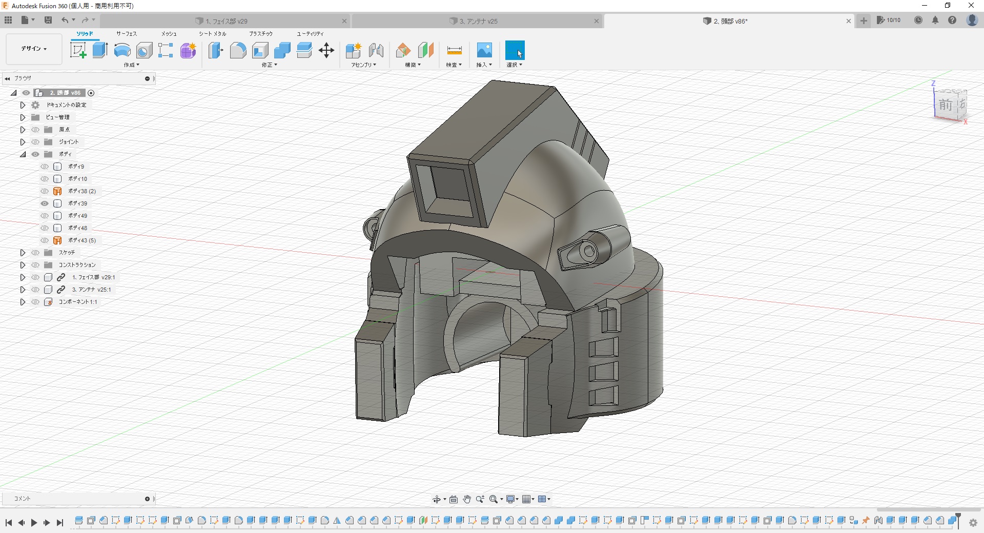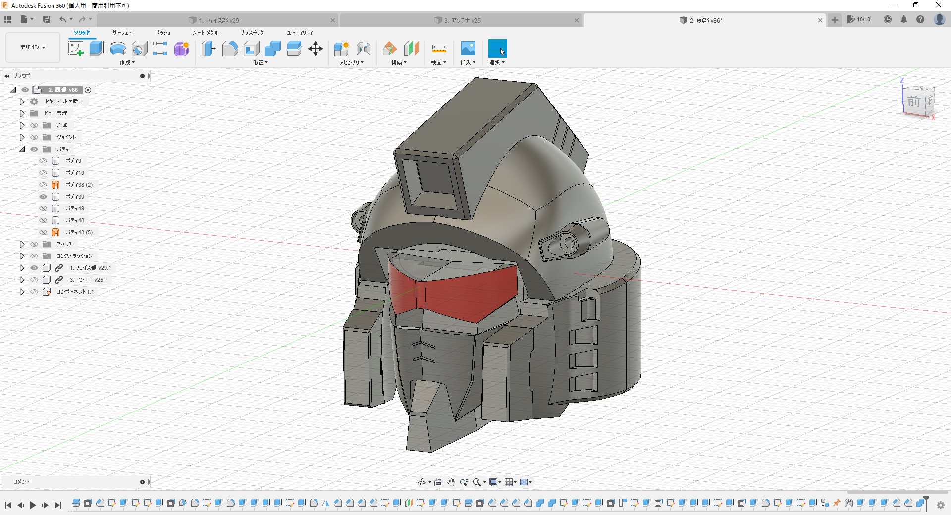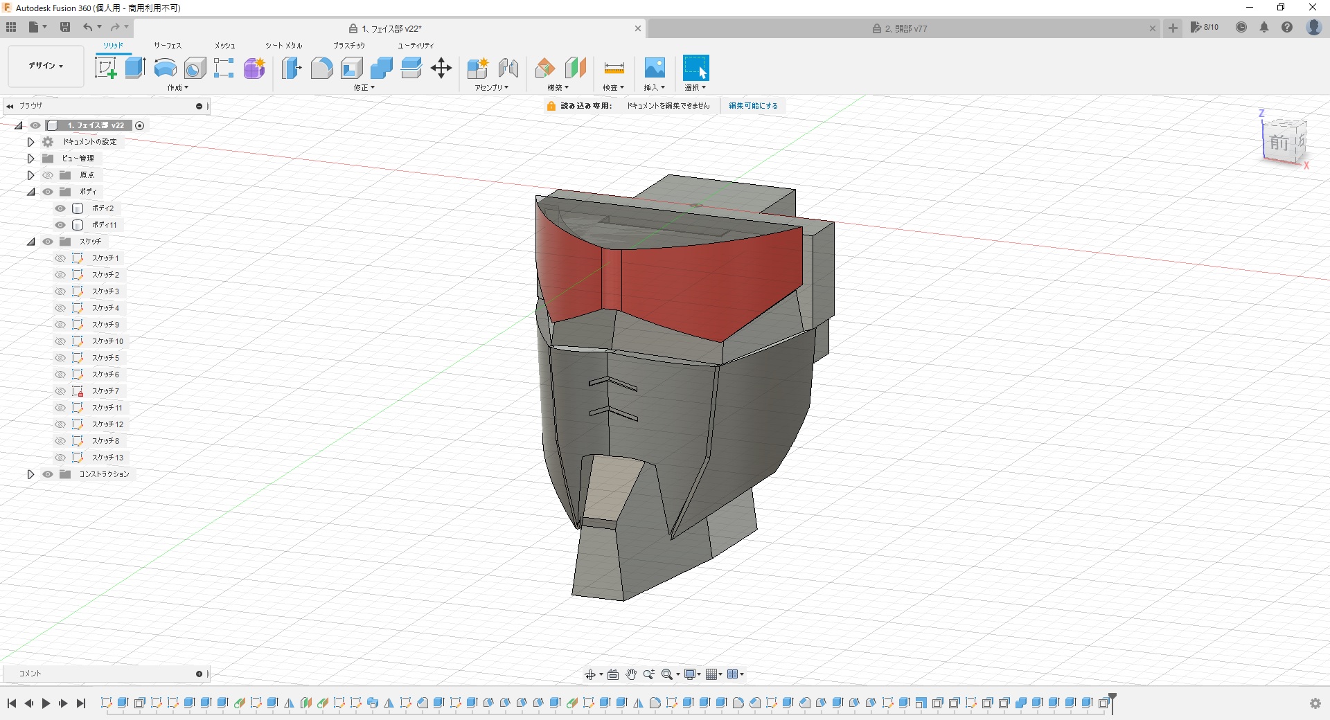 - これも先週末の続きで、出力した頭部をちびちび修正しながら本体に取付け。