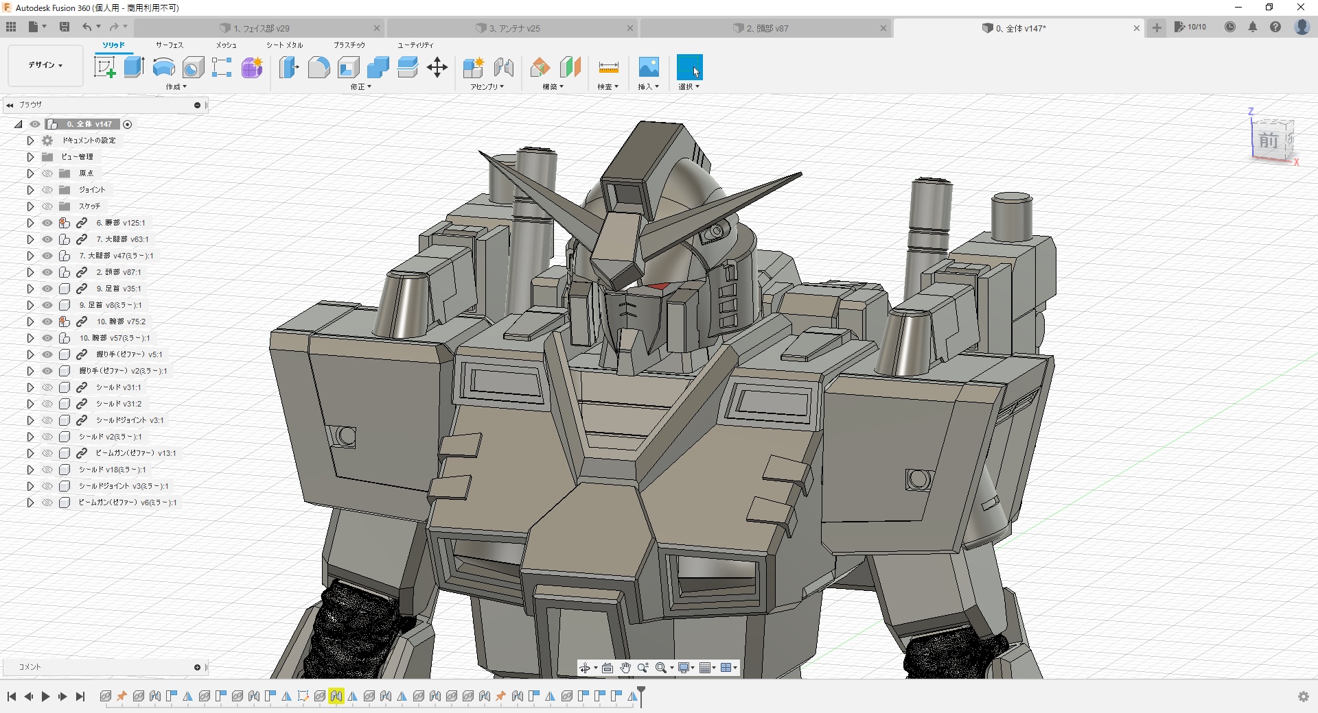 本当は機体と同じ色だったんですけど、面の数が多すぎて、縮小すると黒く見えてしまうという――。